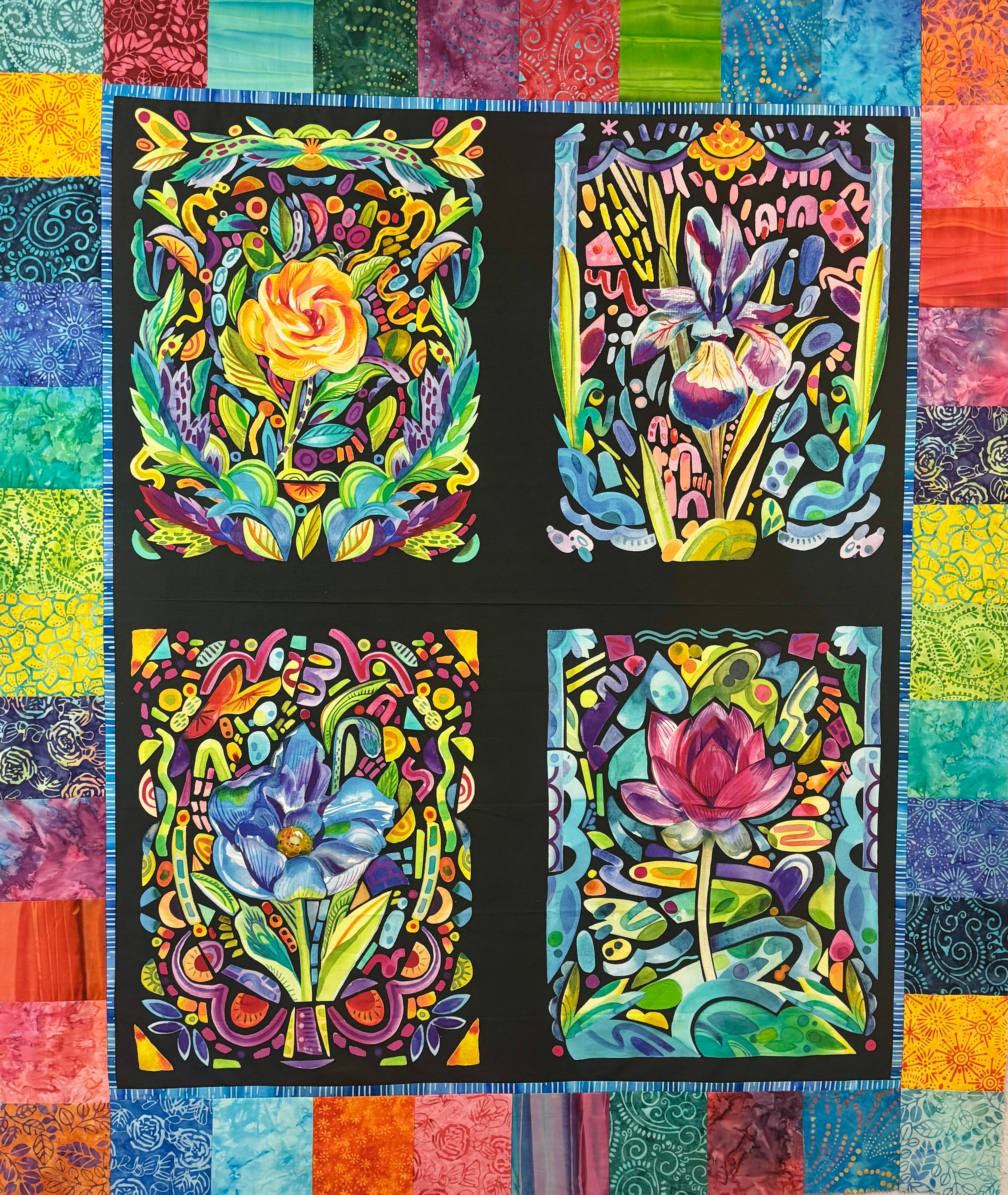 The quilt requires six (6) fat quarters or (6) quarter-yard cuts, and will result in a 20" X 20" table topper or wall hanging.