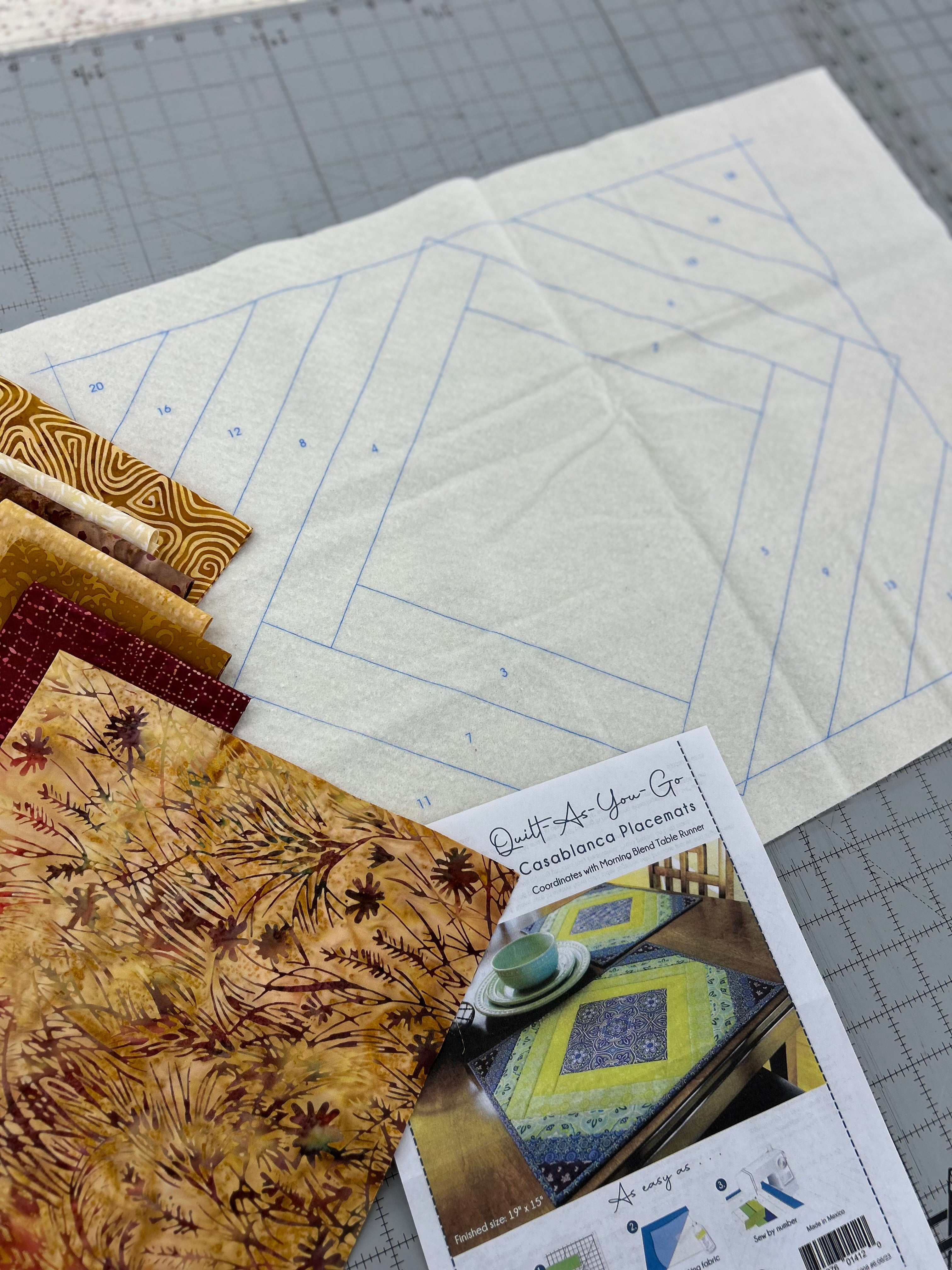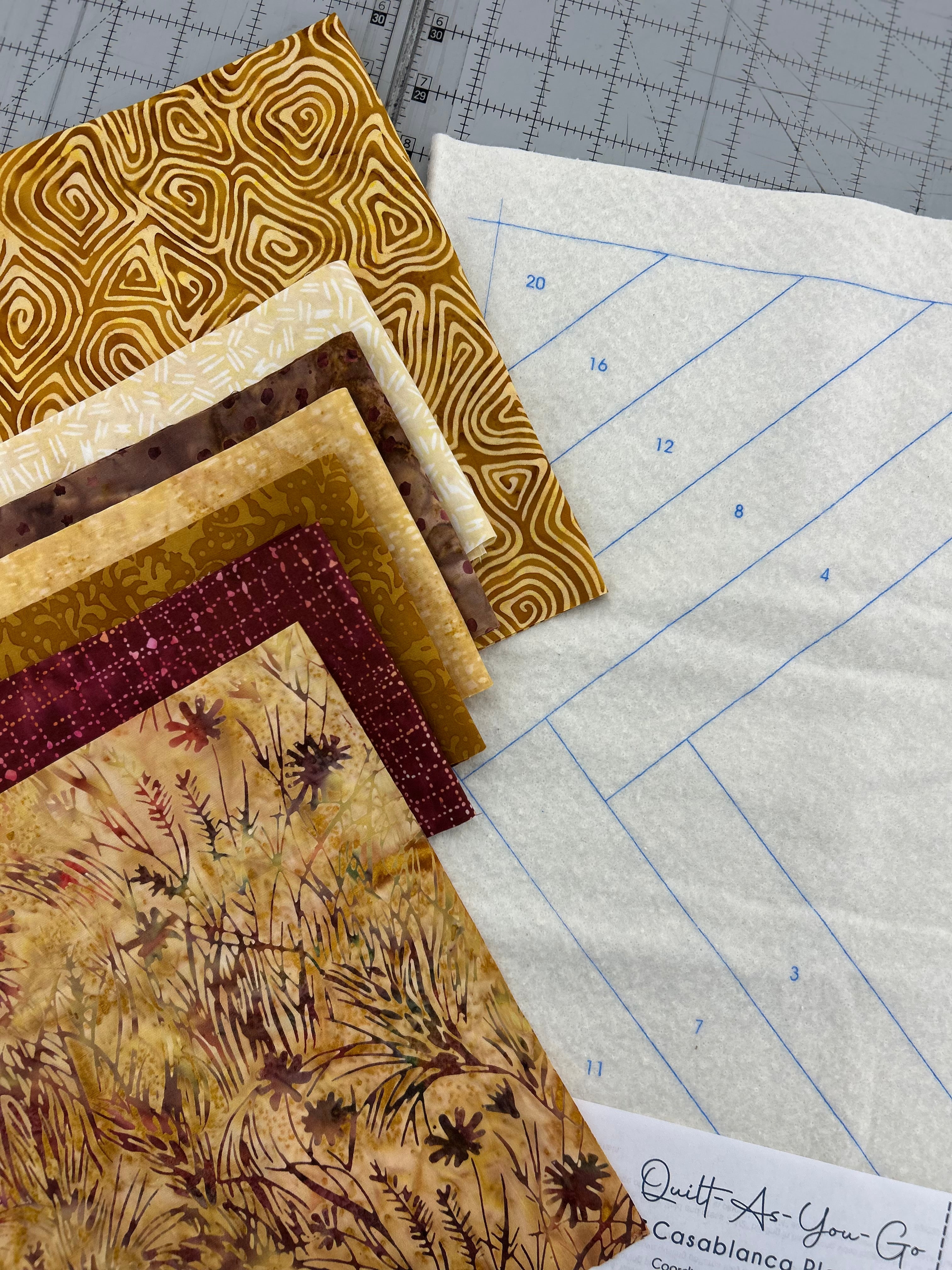Lucky Break Mini-Mystery is completely FREE or you to join. The quilt requires six (6) fat quarters or (6) quarter yard cuts and will result in a 16”x40” table runner or door hanger. You can select from our carefully curated fat quarter bundles that will look great in Lucky Break. OR, if you want to dig into your stash, we will share a video in our Facebook Group that will help guide you with your fabric choices.