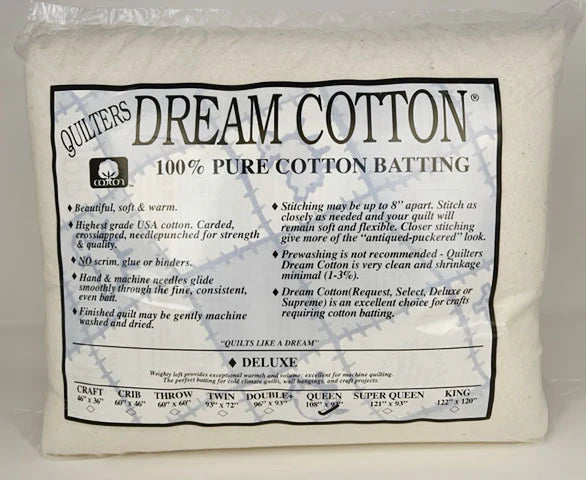 • Deluxe:  Weighty loft. Provides added warmth and weight offering extra emphasis for your quilting design. Great for machine quilting weighty quilts, wall hangings, bags, craft projects and much more. Available in Natural Cotton.