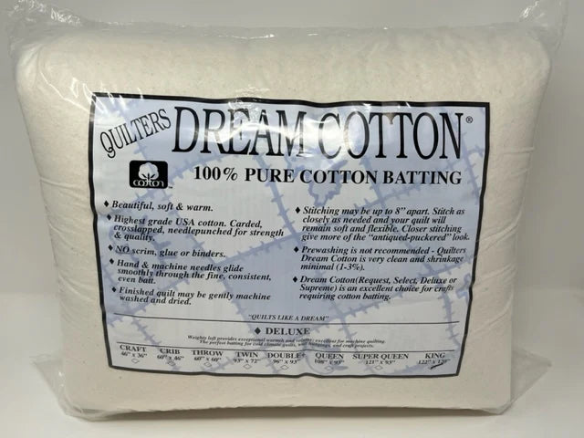• Deluxe:  Weighty loft. Provides added warmth and weight offering extra emphasis for your quilting design. Great for machine quilting weighty quilts, wall hangings, bags, craft projects and much more. Available in Natural Cotton.