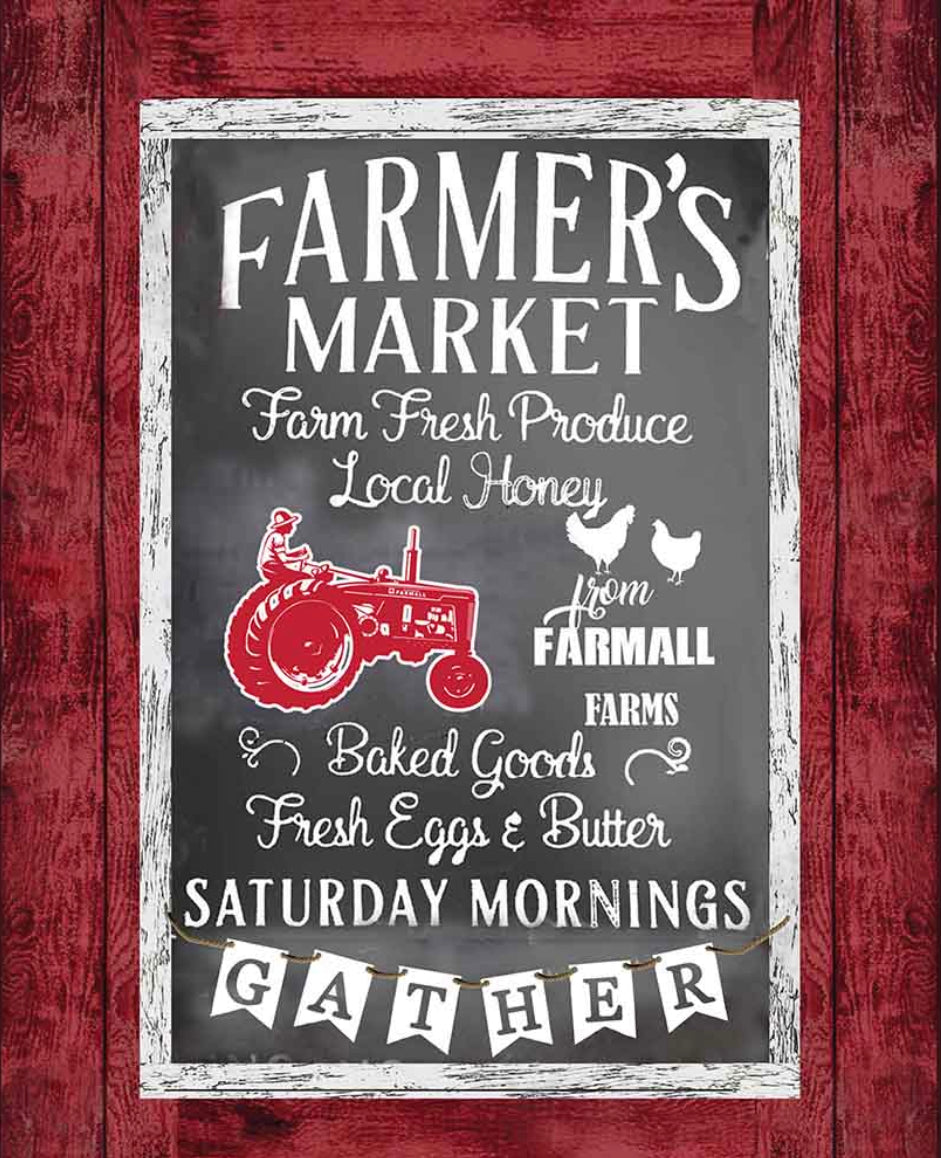 Fabric panel displaying a Farmer's Market sign design with a Farmall H tractor silhouette.
