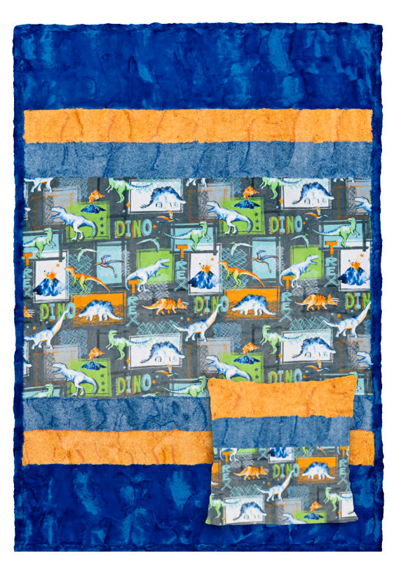 Our Rawrsome! Royal Cuddle® Kit is full of stuffed animal-like dinos that look like they were crafted with crayon, watercolor, and ink. It comes with a luxe, electric T-Rex Digital Cuddle® Graphite print, plus other triceratops, stegosaurus, and pterodactyl illustrations you'll go gaga over. The quilt is 38" by 58", and the bundle includes Luxe Cuddle® Hide Royal, Luxe Cuddle® Heather Clementine, and Luxe Cuddle® Heather Electric for the binding. You can pick the perfect backing fabric from Cuddle® 3 Royal, Cuddle® 3 Pumpkin, or Luxe Cuddle®Groovy Rainforest (about 1 1/8yds). Take 'em back to the prehistoric era with this one-of-a-kind cuddle kit!