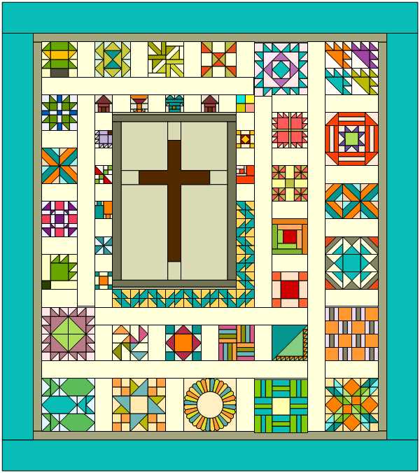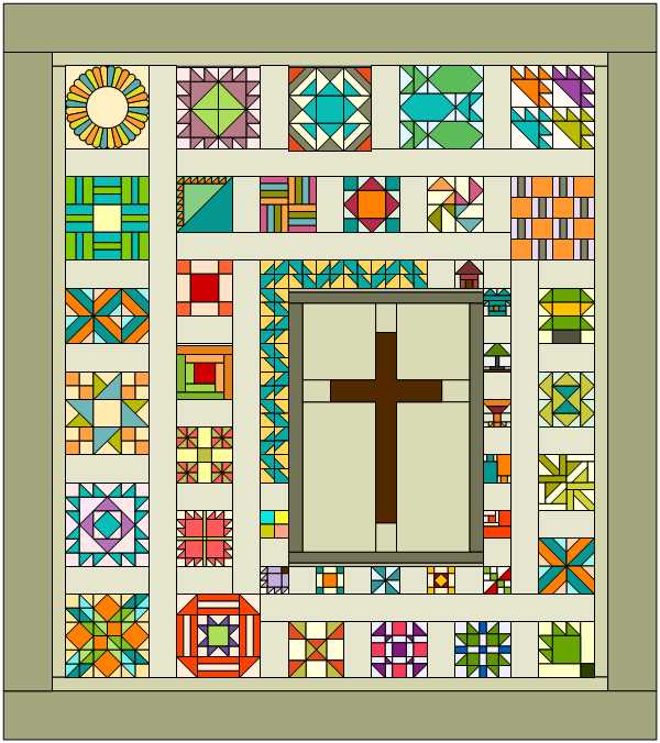 The quilt includes 4", 8" and 12" blocks to represent 40 different Parables of Christ.