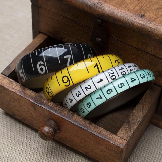 Express yourself and love of all things sewing with vibrant and fun measuring tape bangles. Wear one or stack multiple for a stylish look. Available in multiple colors and widths. One size fits most.
