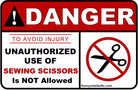 DANGER UNAUTHORIZED USE OF SEWING SCISSORS 8 1/2"X 5 1/2"