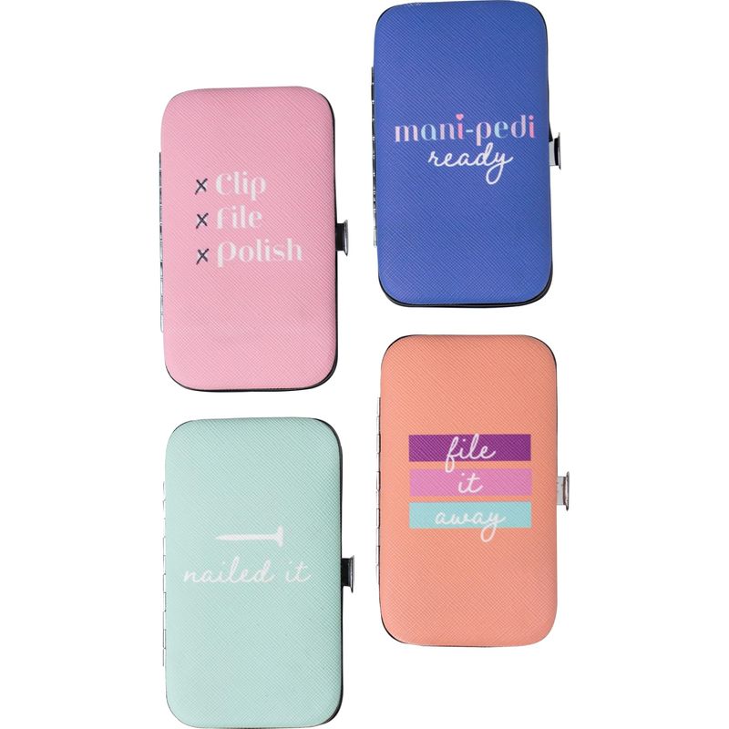 • Take care of your nails with the DM Merchandising Olivia Moss Mani Pedi Ready 6-Piece Nail Kit. The stainless steel construction affords durability, while the snap-close organizer provides storage space for your tools.