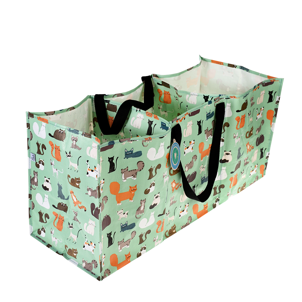 A three-compartment jumbo storage bag, ideal for storing toys, crafts, bedding, children’s clothing and more. Adorned in our bright and bold Wild Wonders print and made from recycled materials.