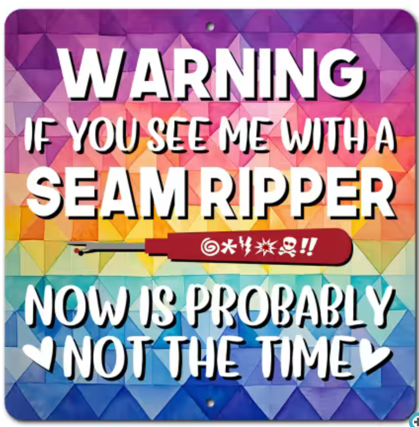 SEAM RIPPER WARNING ALUMINUM SIGN 12"X12"