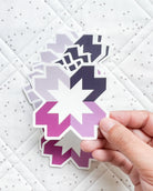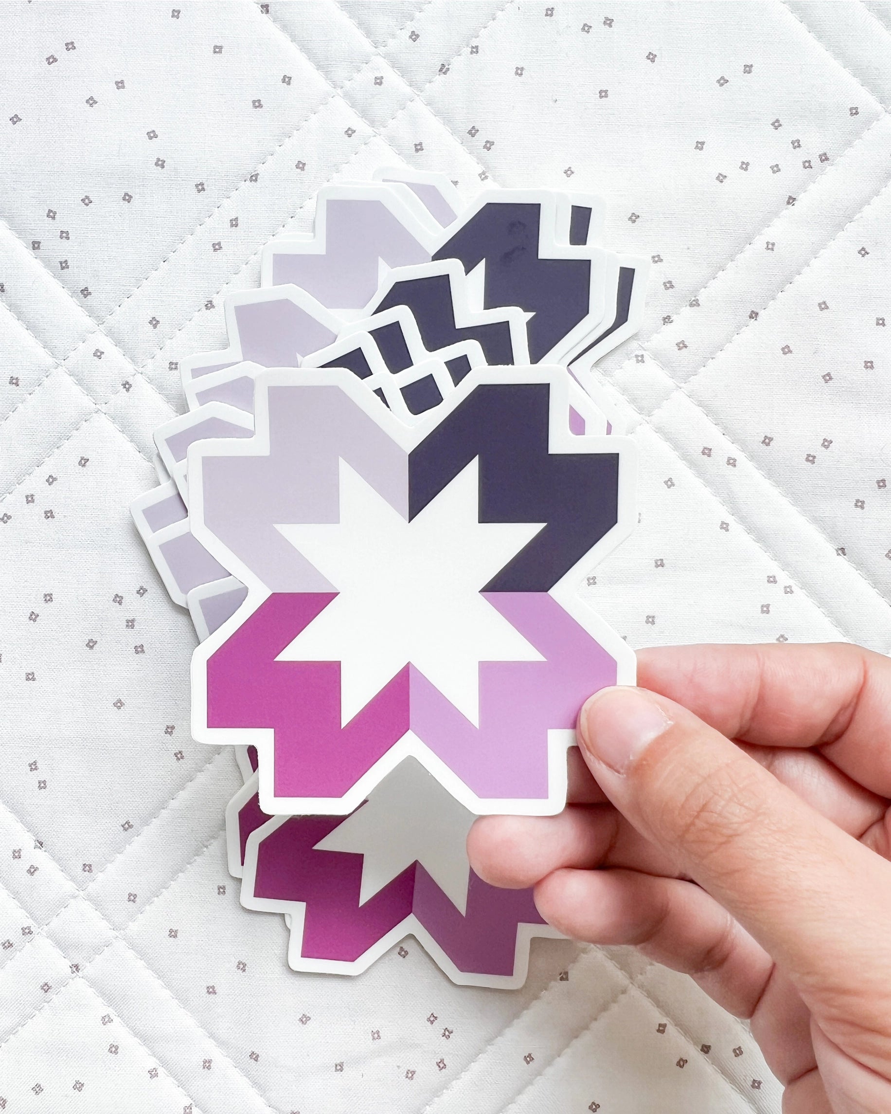 Inspired by the Starlight quilt pattern. This high quality vinyl sticker can be placed on water bottles, sewing machines, laptops, etc. Size: 3" x 3" Material: Waterproof and dishwasher safe vinyl