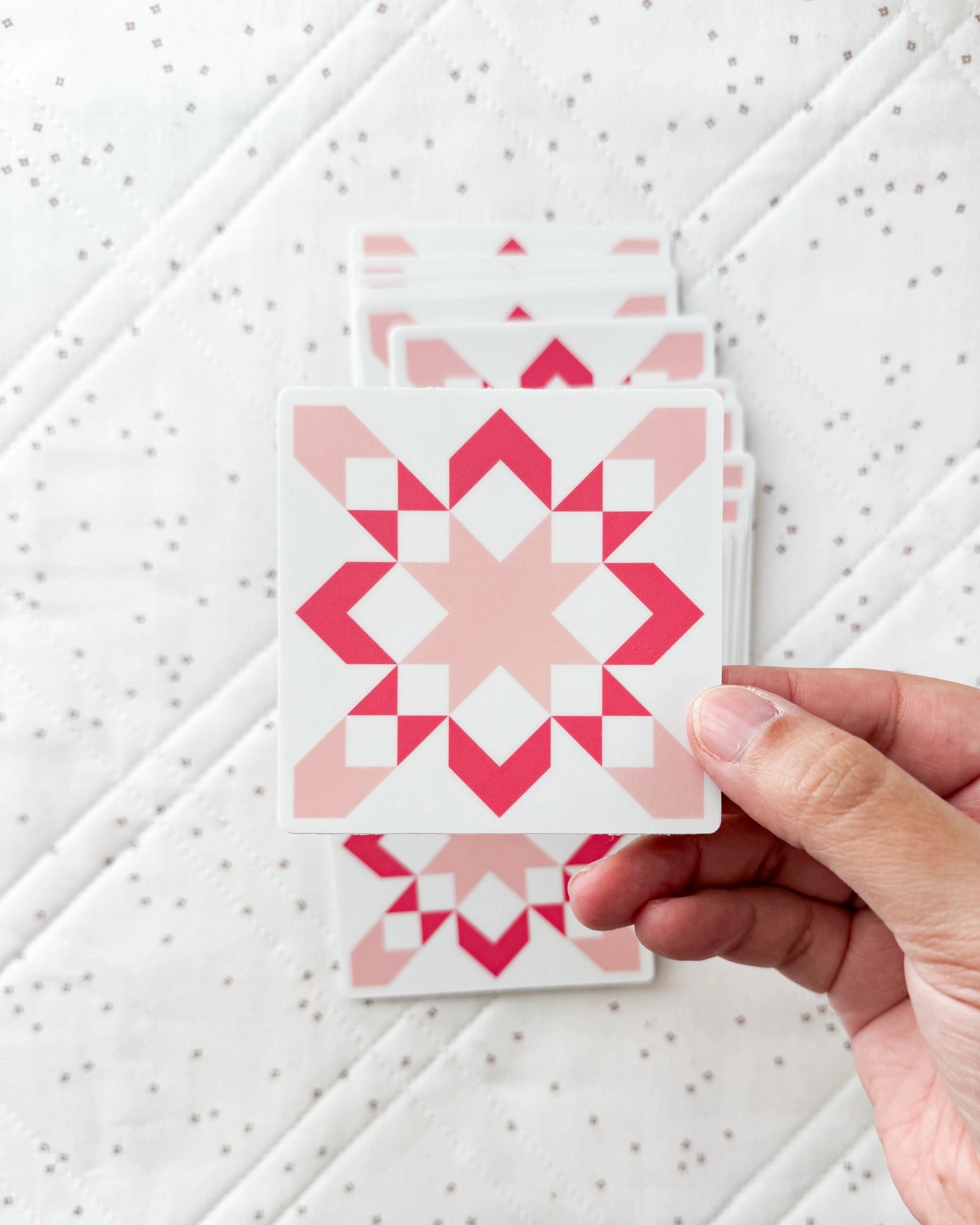 Inspired by the Starly quilt pattern, this pink sticker is the perfect addition to your life or as a gift to your quilty friends! This high-quality vinyl sticker can be placed on water bottles, sewing machines, laptops, etc.