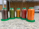 Receive 5 Holiday themed spools each month. 100% polyester Isacord is the thread of choice for maximum productivity and the highest quality embroidery. At nearly twice the strength of rayon thread, Isacord is the smoothest running and most reliable polyester thread produced. It has been engineered from the finest raw materials to provide just the right amount of elasticity to allow for high speed running without looping or puckering while virtually eliminating thread breaks. 1,000 meter mini-king spools featuring a unique snap down base for clean and easy storage.