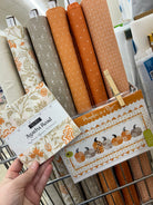 Celebrate autumn with the Agatha Road Pumpkin Runner Kit, showcasing the charming Pumpkins in a Row pattern. This kit includes yardage and a charm pack from Fig Tree & Co.'s Agatha Road collection for the funner top and binding. The finished runner measures 16.5" x 40.5" and features delightful prairie points along the border for a fun, festive touch!