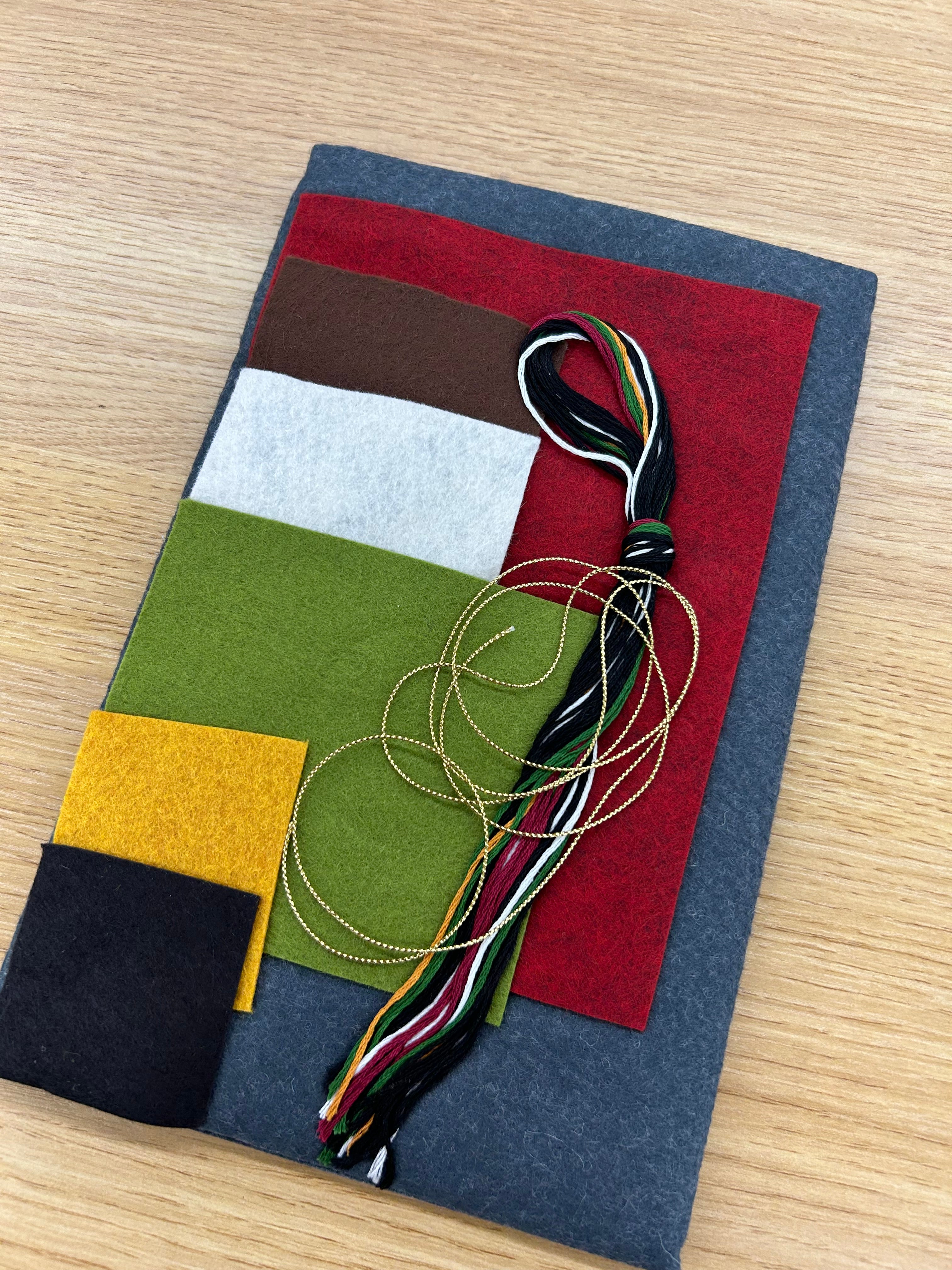 NOT INCLUDED: matching floss for felt appliqué/blanket stitch.