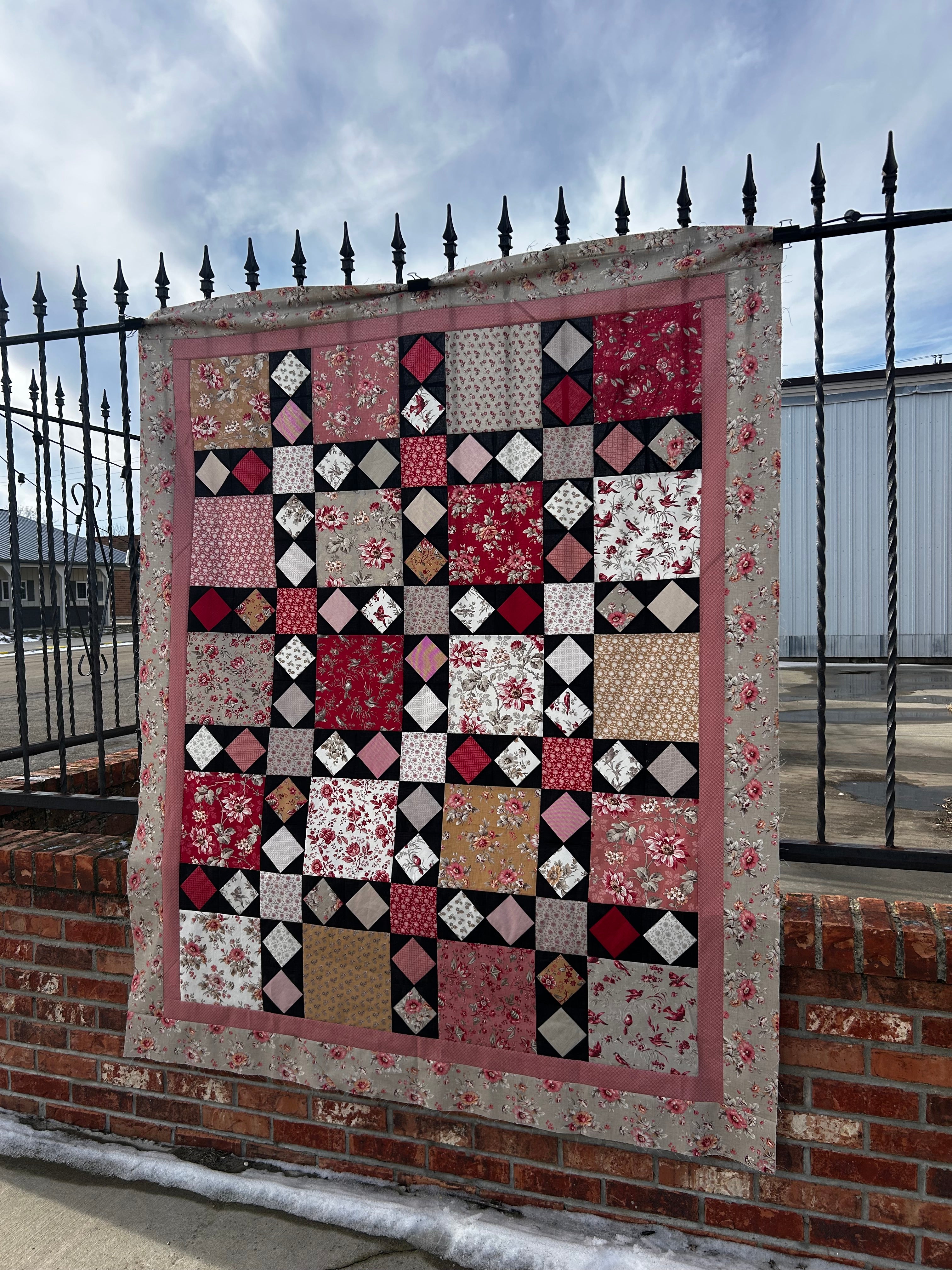 All aboard for quilting fun! This charming train-themed kit features fabrics from the beloved French General layer cake collection, perfect for creating a finished quilt measuring 62x76 inches. Everything you need is included: pre-coordinated fabrics, a detailed pattern, and binding materials.