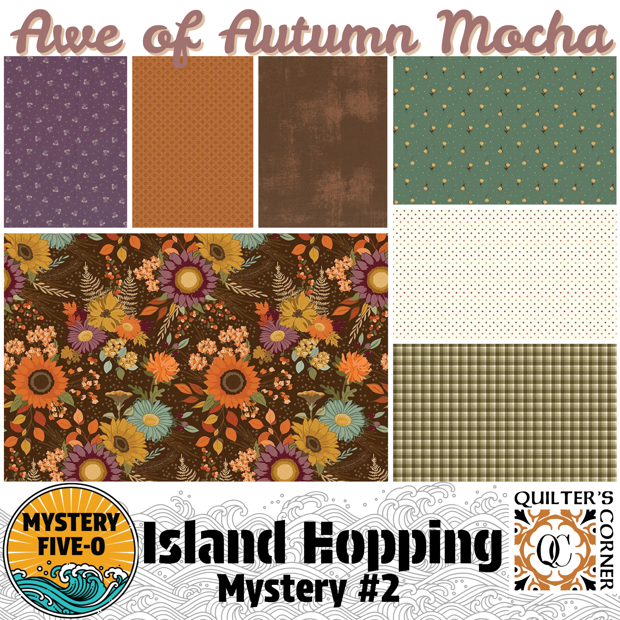Mystery Five-0 Island Hopping Quilt Kit - AWE OF AUTUMN MOCHA KIT