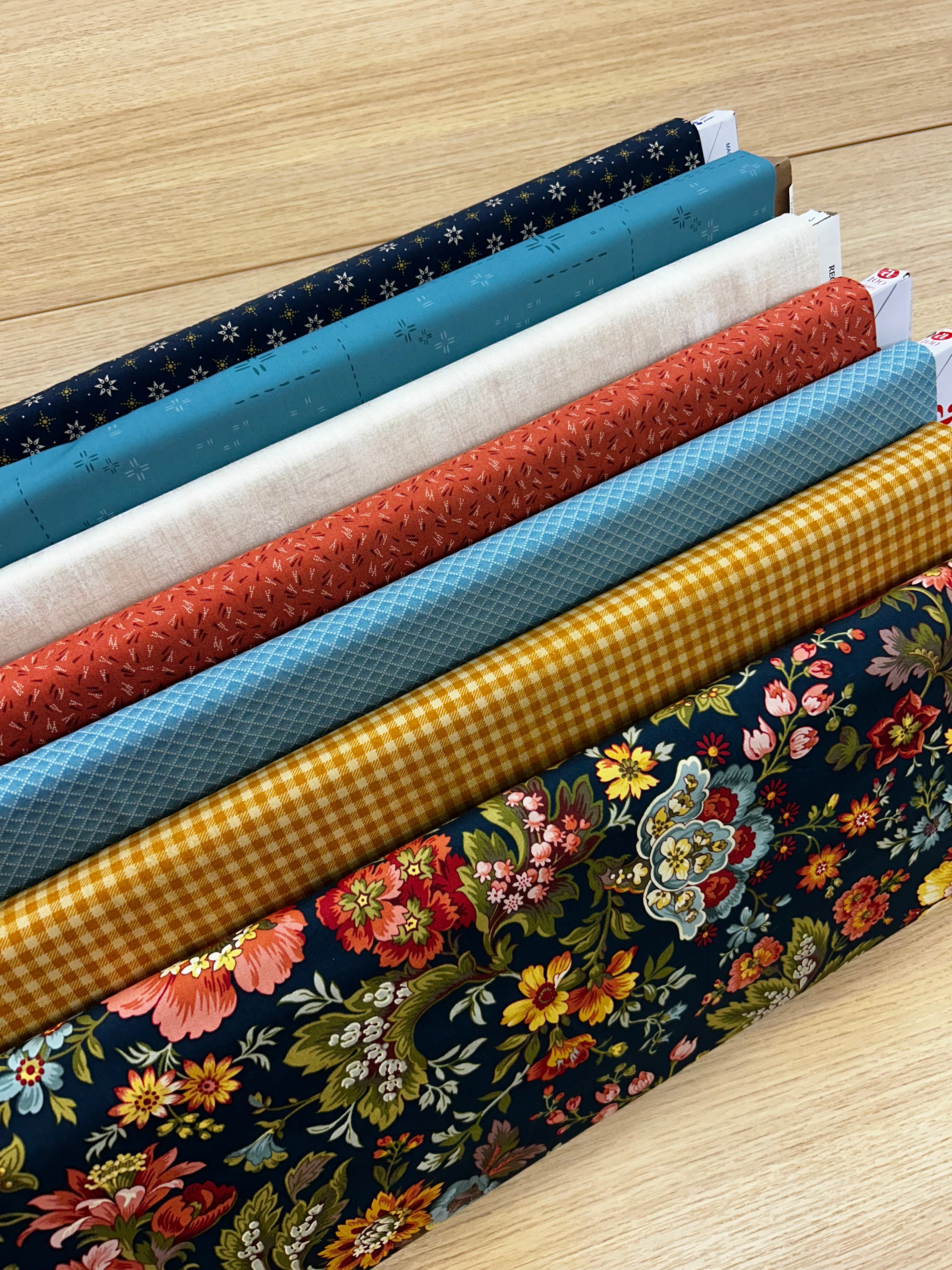 - Fabric for top, borders and binding.(7 different fabrics included = 7.125 yards).