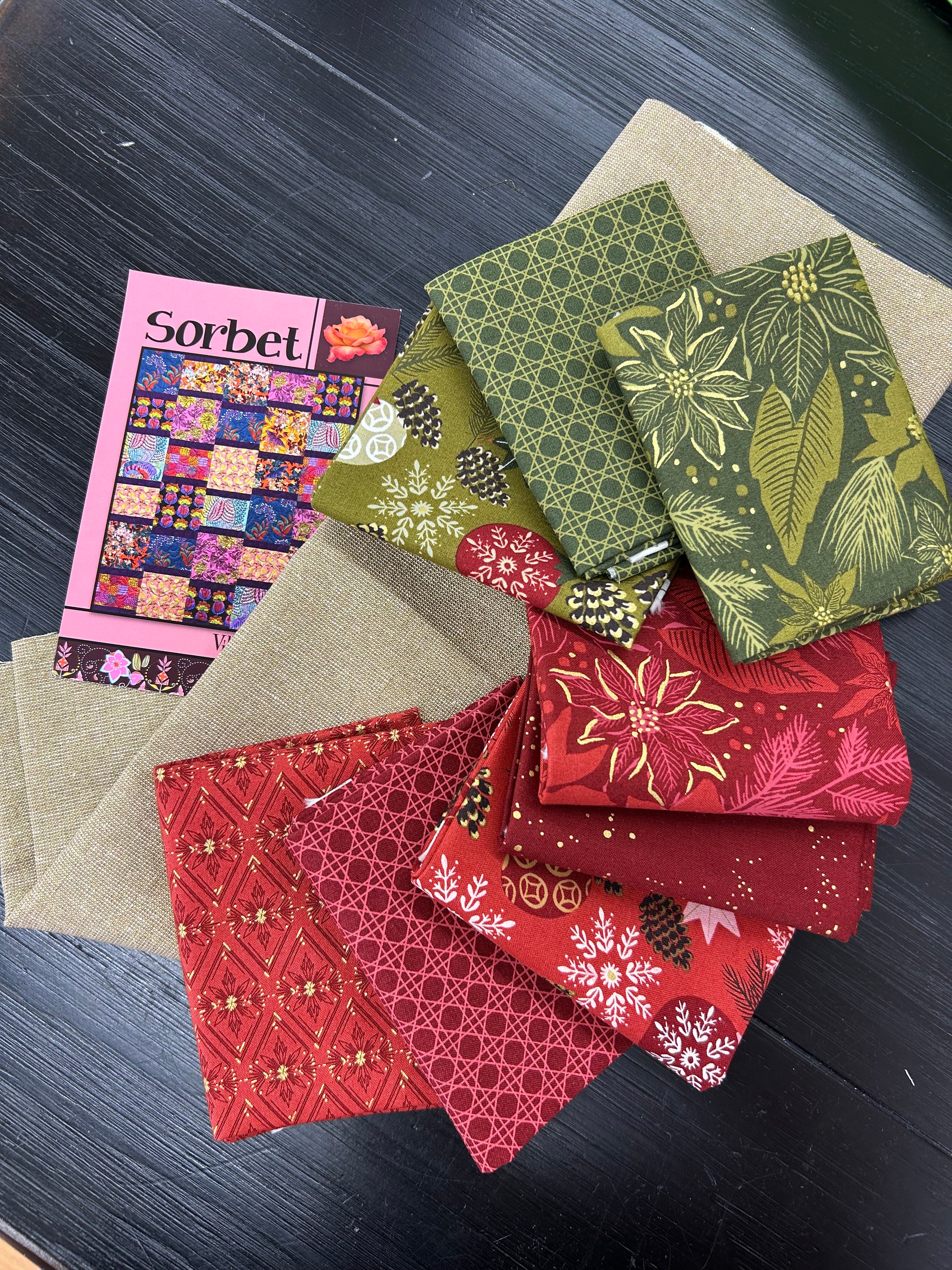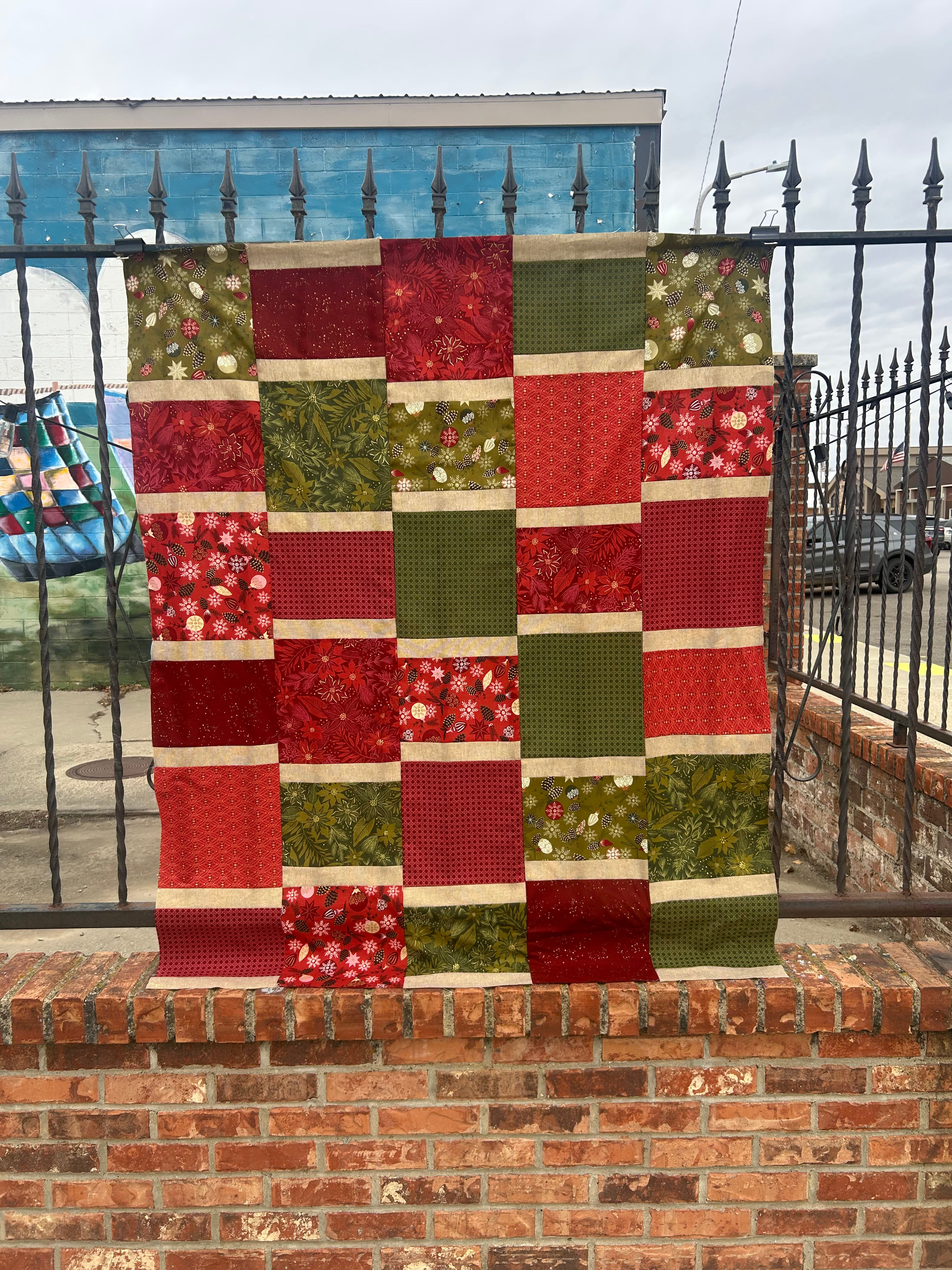 48x57. Kit comes with pattern & fabrics for top & binding.