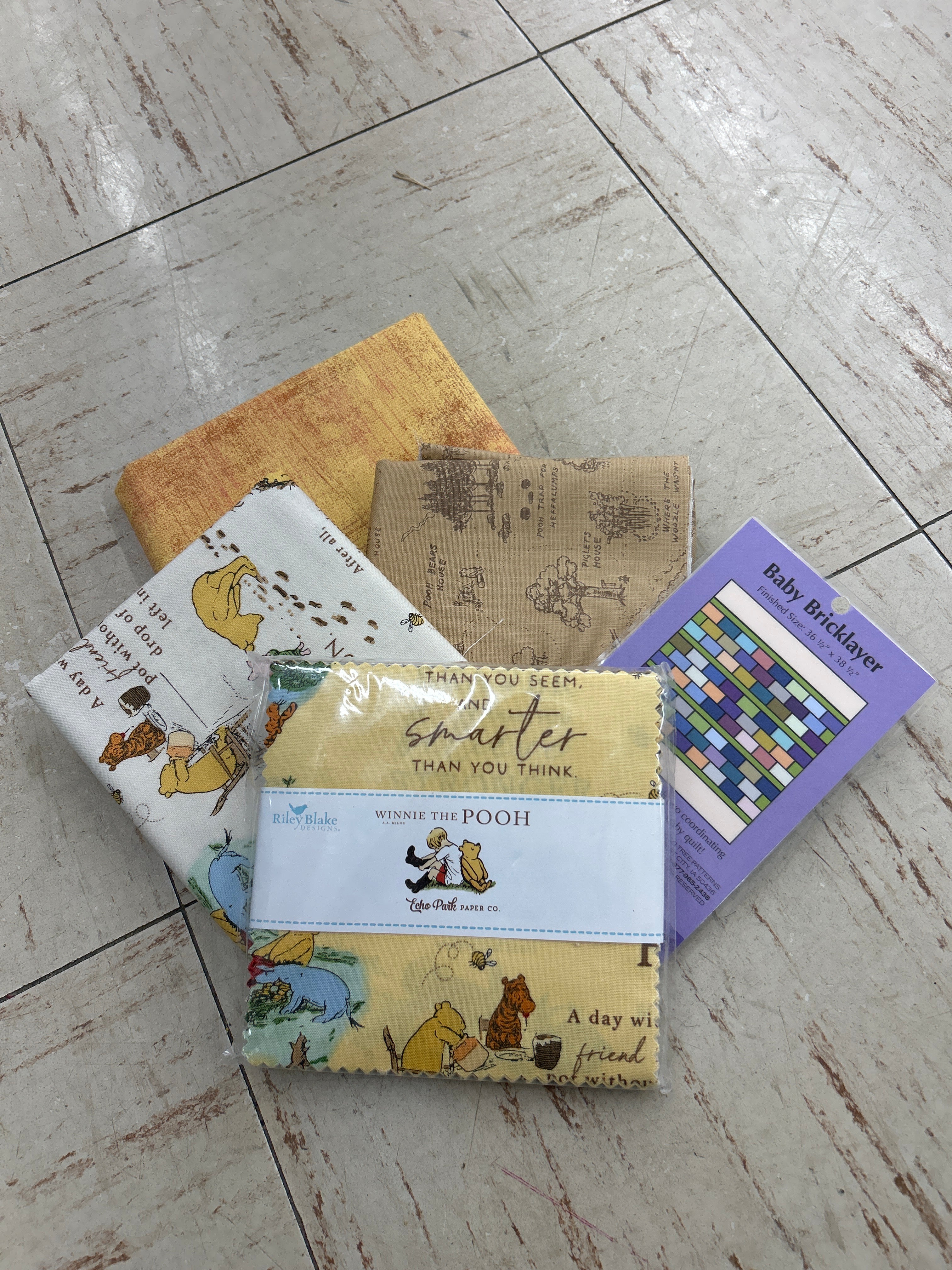 Introduce your little one to the magical world of the Hundred Acre Wood with this charming Winnie Pooh Baby Bricklayer Kit! Perfect for creating a cozy baby quilt, this delightful collection features beloved characters from A.A. Milne's timeless tales. The easy-to-use bricklayer design makes piecing simple and fun, even for quilters new to the craft. Soft, baby-friendly fabrics in warm honey tones and gentle pastels create a soothing nursery accent that grows with your child. Stitch together memories and comfort in one adorable project that any Pooh fan will treasure.