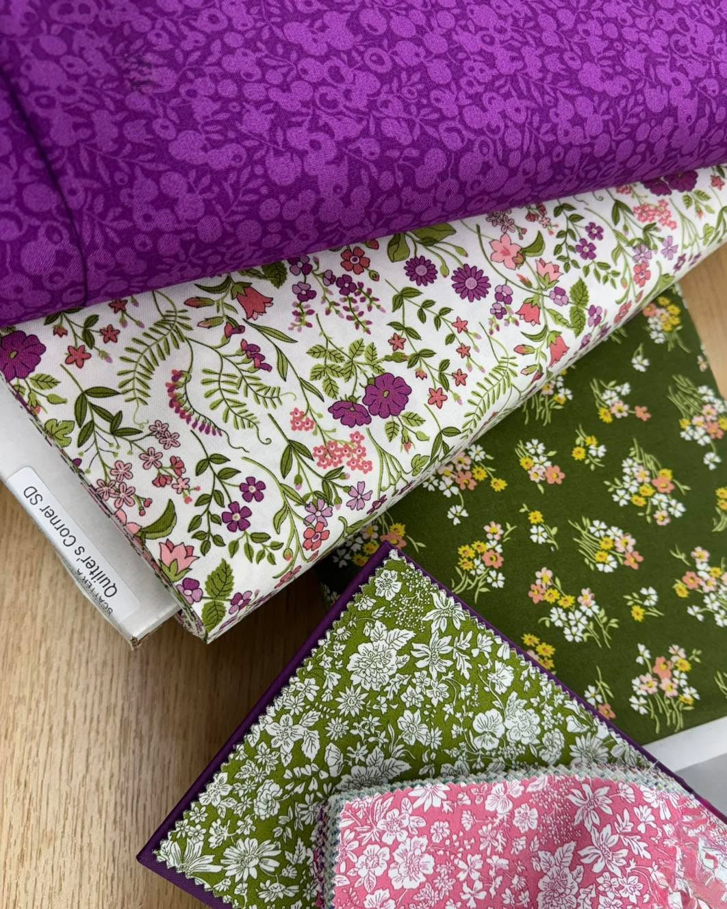 Wrapped Liberty Bouquet quilt kit features a finished size of 56x64 inches, perfect for creating a stunning floral-inspired quilt. This complete kit includes five coordinating 1-yard cuts of premium Liberty fabrics, carefully selected to work beautifully together, plus pre-cut binding to finish your project. Ideal for quilters seeking an elegant design with high-quality materials and everything needed to get started.