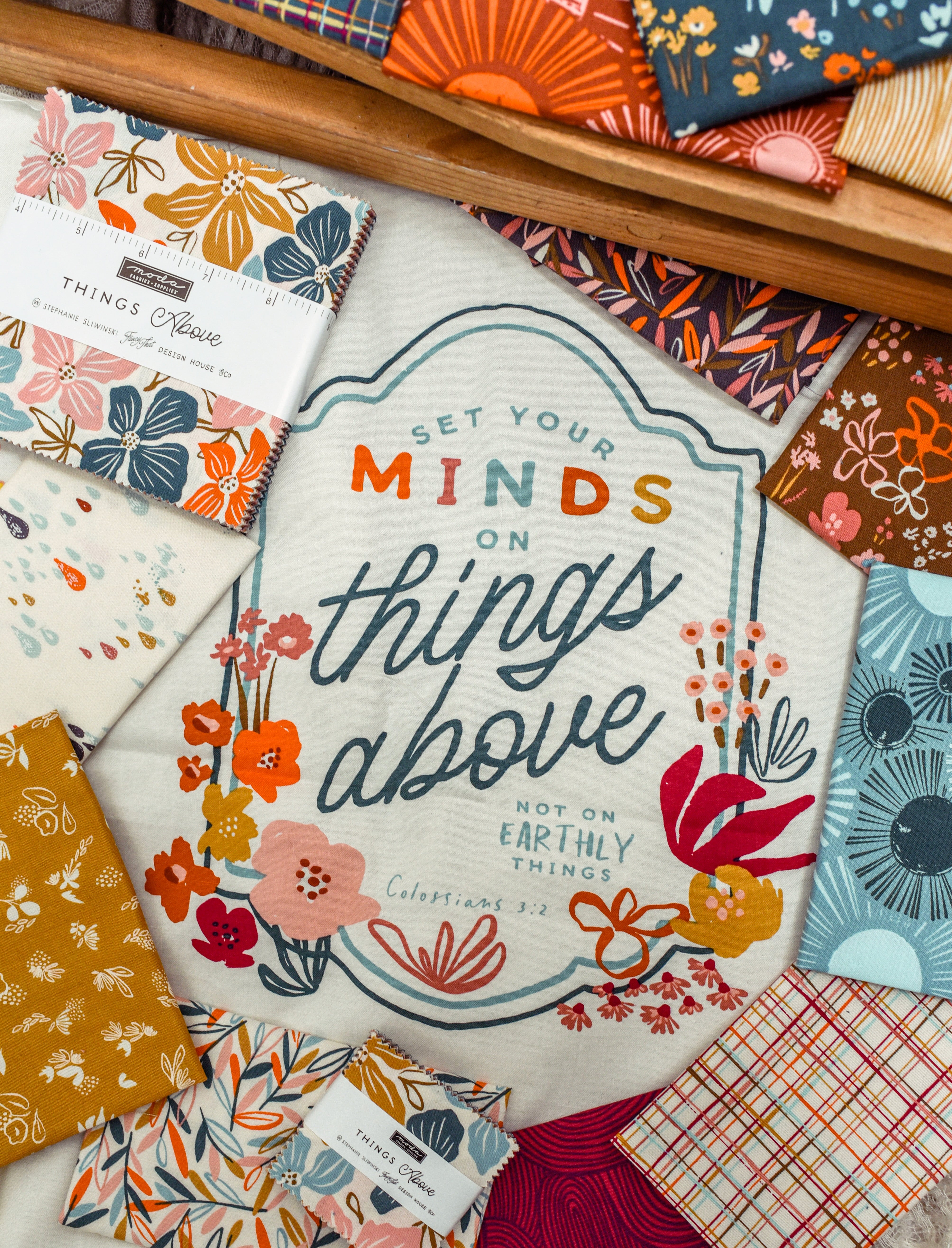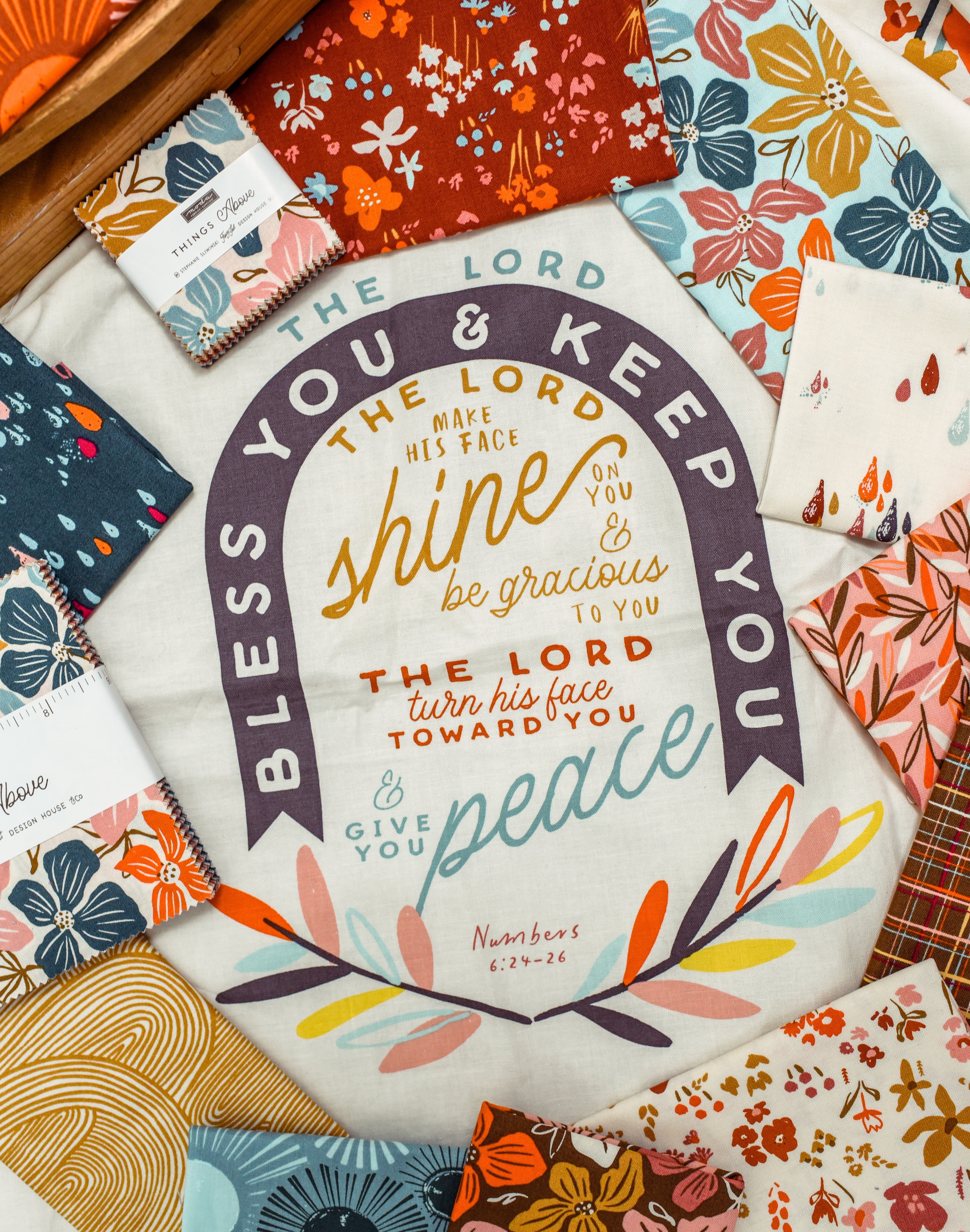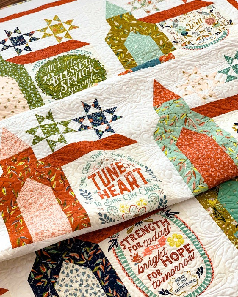 Indulge in the coziness of blessings with this kit! It comes with the My Wondering Path Firm Foundations Quilt Pattern and the Fancy That Design House Things Above fabrics and panels for a 68" x 88" quilt top and binding.