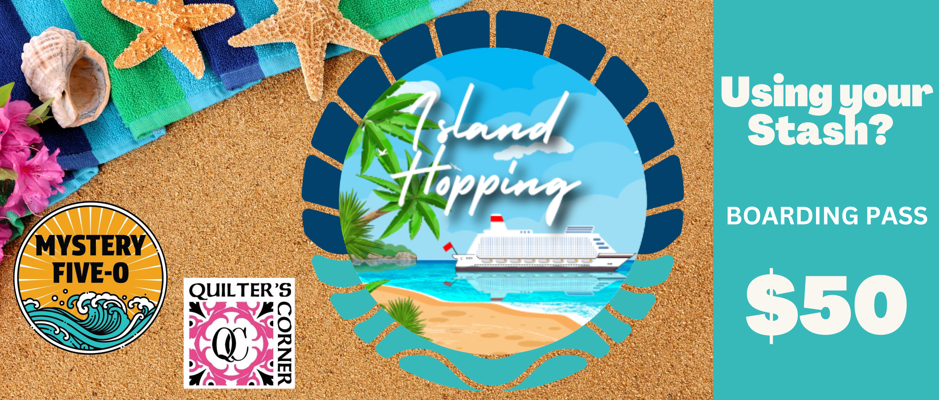 We hope you’ll join us for the M50 Mystery #2, ISLAND HOPPING! This mystery is a virtual event happening in our Mystery Five-0 Facebook Group in November. A mystery clue will be emailed to registered quilters each week in November. The reveal patterns (yes, there are two choices for setting your blocks) will be emailed in December. Instructional videos for each clue and the reveal patterns will be posted in our Facebook group. Join our group and watch for details.