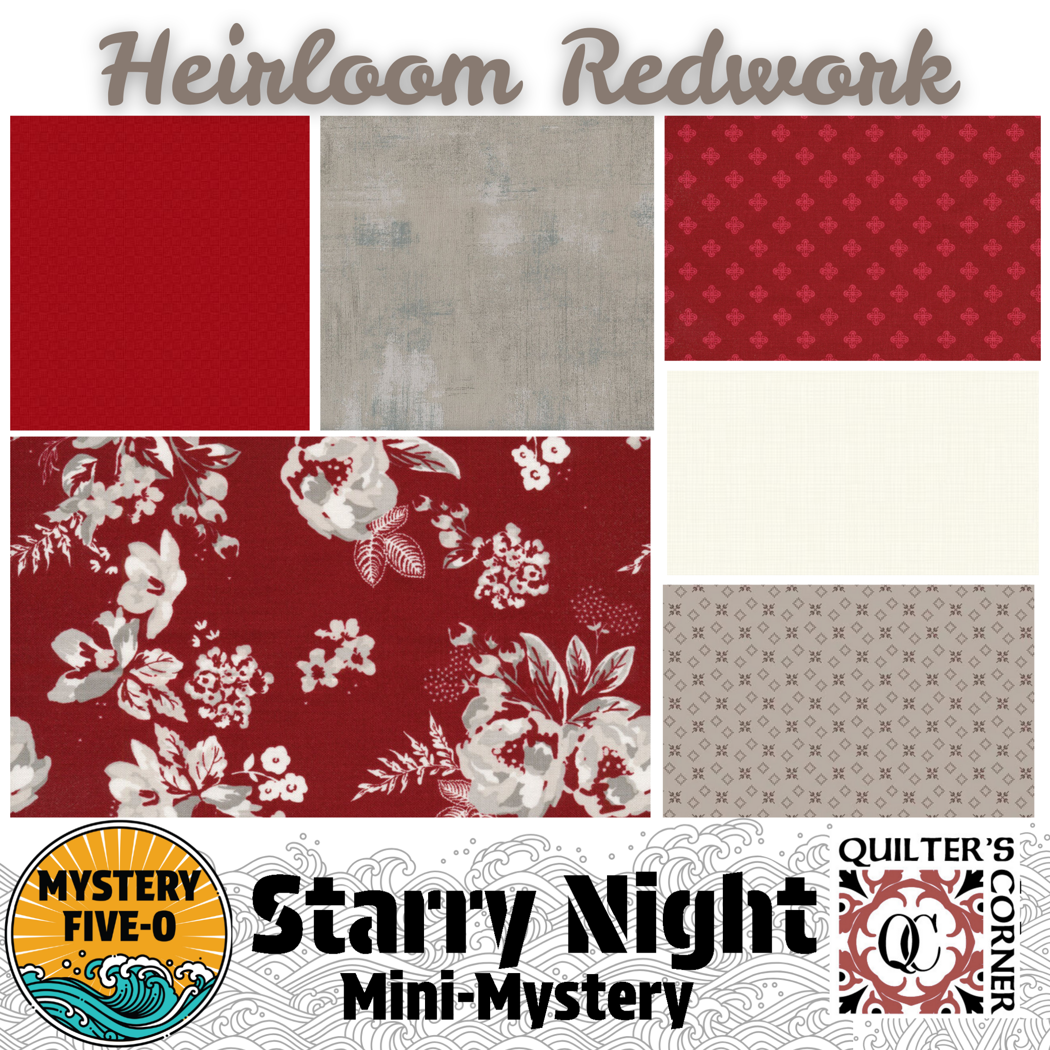 STARRY NIGHT MYSTERY HEIRLOOM REDWORK BUNDLE