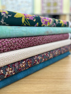 The Starry Night Mystery Quilt design needs only six fat quarters. Pick from our stunning hand-selected fabric bundles before the mystery begins on September 20th, 2025!