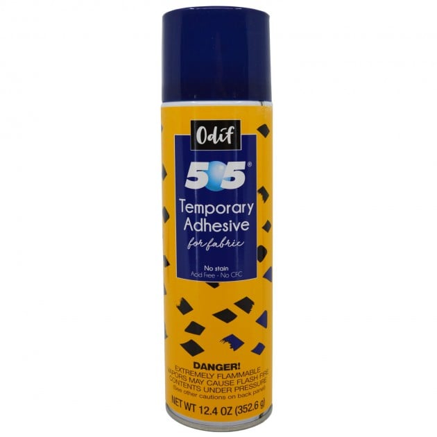 Odif 505 Temporary Fabric Adhesive is ideal for no pin basting of the quilting sandwich. It avoids threading steps and the use of pins. It is also used for temporary and precise holding of the fabric during sewing or machine embroidery. It does not stain the fabric. It evaporates when the fabric is handled and disappears when washed.