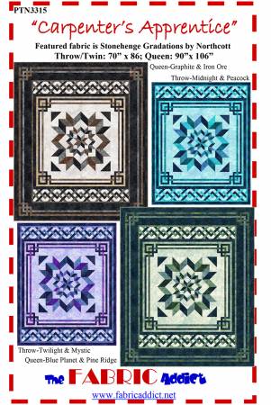 Carpenter's Apprentice quilt pattern. Throw/Twin, Queen sizes. Elegant quilt pattern with interesting border techniques.
