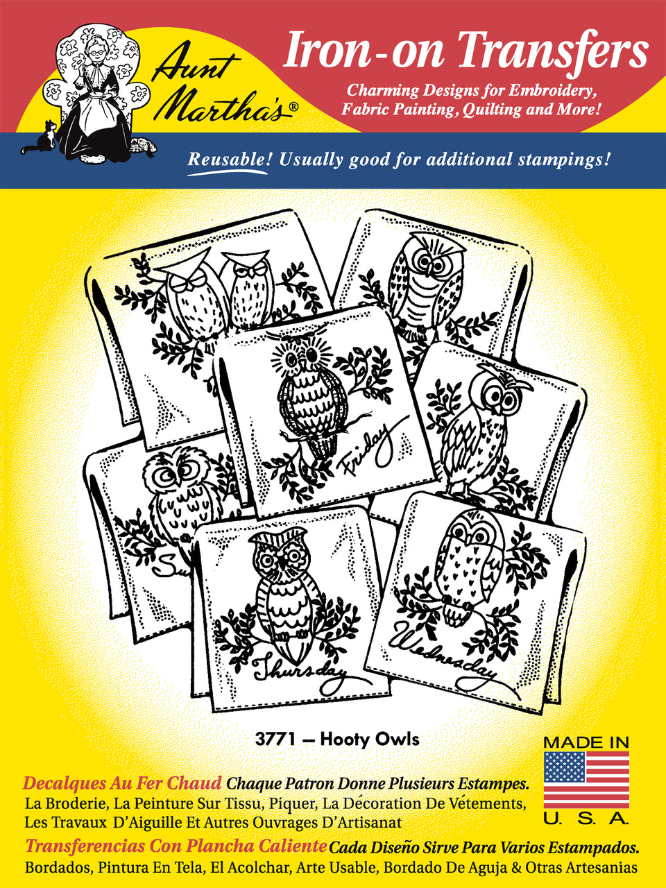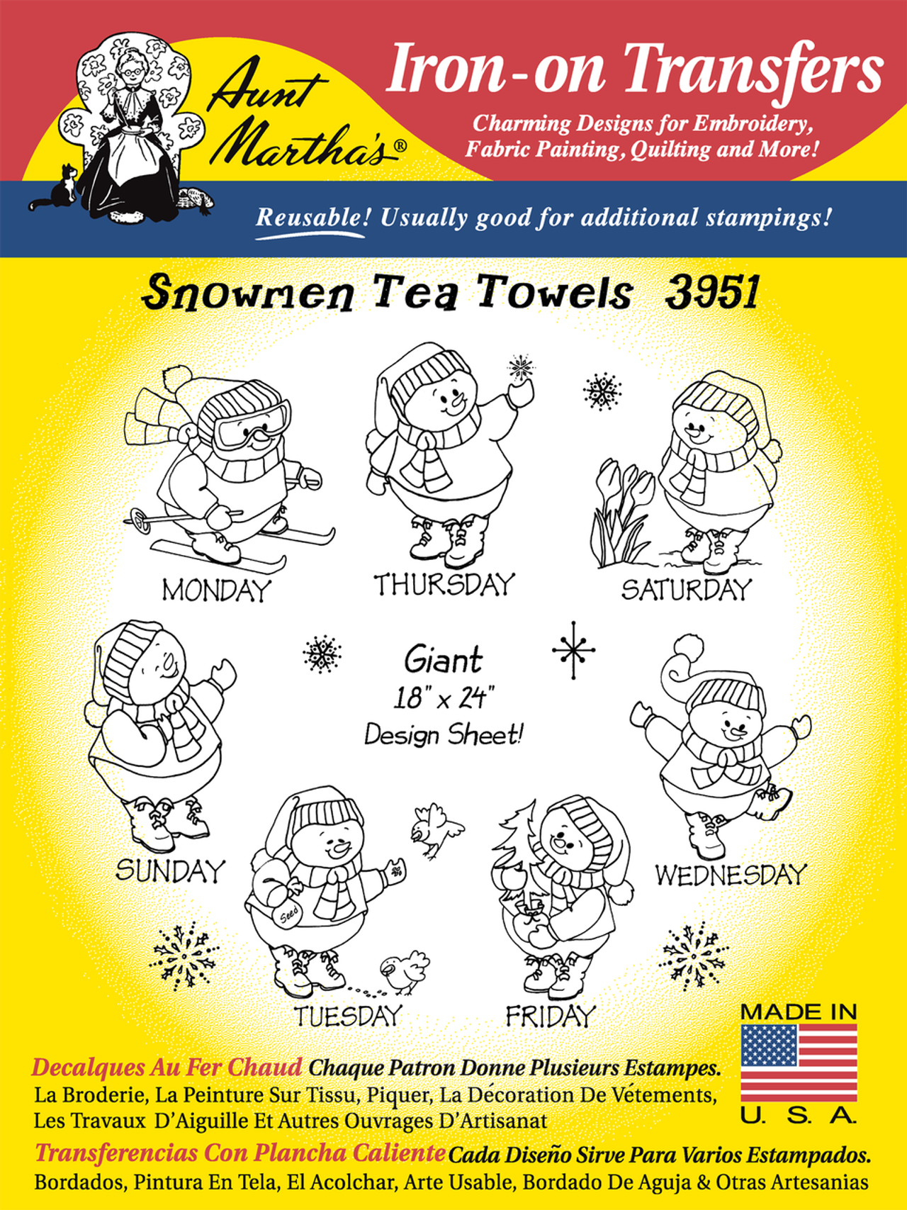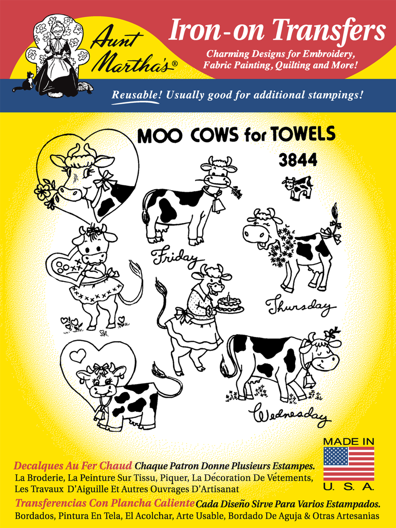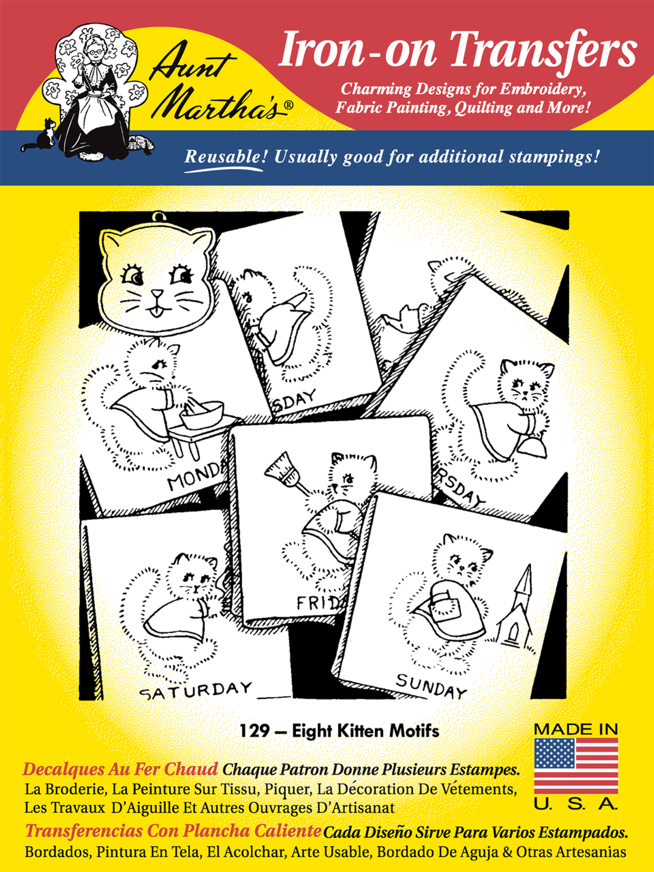 Aunt Martha's Embroidery Transfer Patterns with Days of the Week (DOW) designs. Many of these embroidery designs will feature the traditional old-fashioned chores for each day of the week ~ Monday (Wash Day), Tuesday (Iron Day), Wednesday (Mend Day), Thursday (Market Day), Friday (Clean Day), Saturday (Bake Day), Sunday (Rest Day). Transfer the pattern onto your fabric with a hot iron... use hand stitch embroidery or liquid embroidery paints to finish!