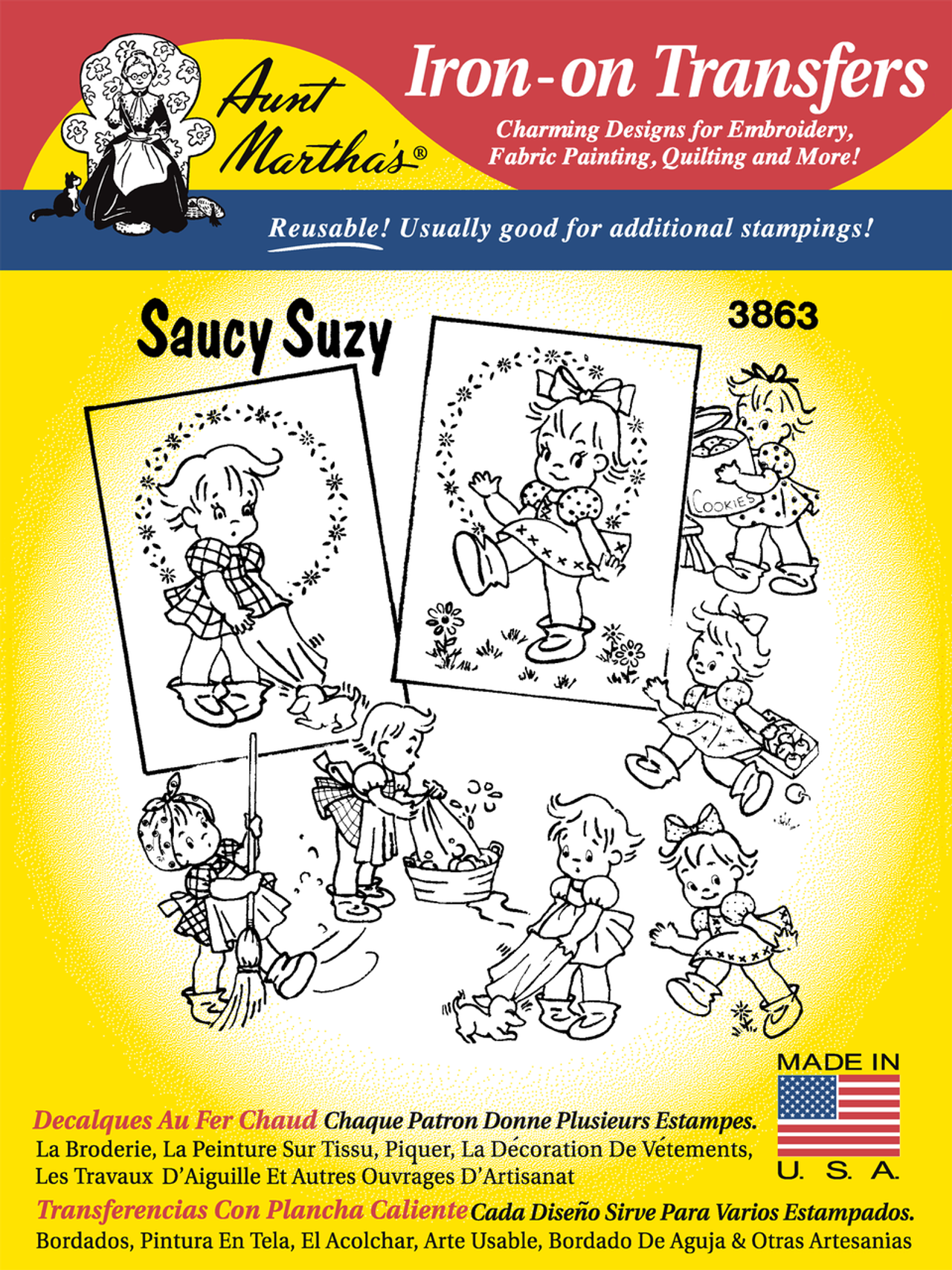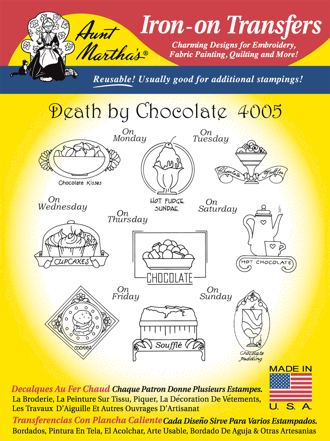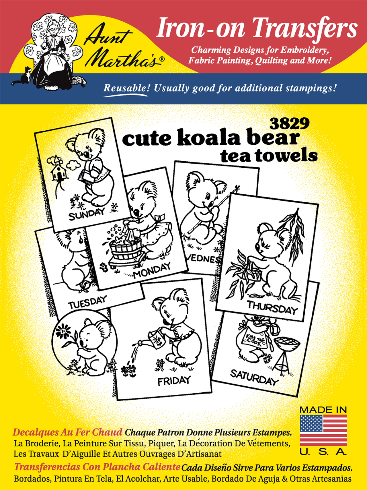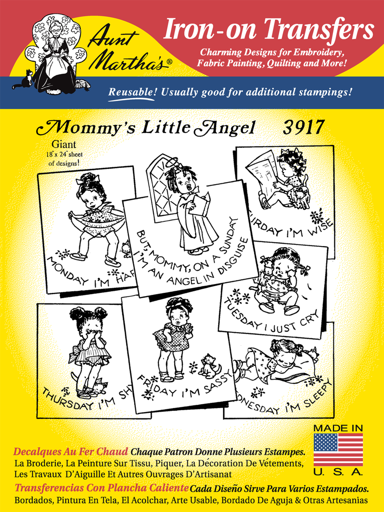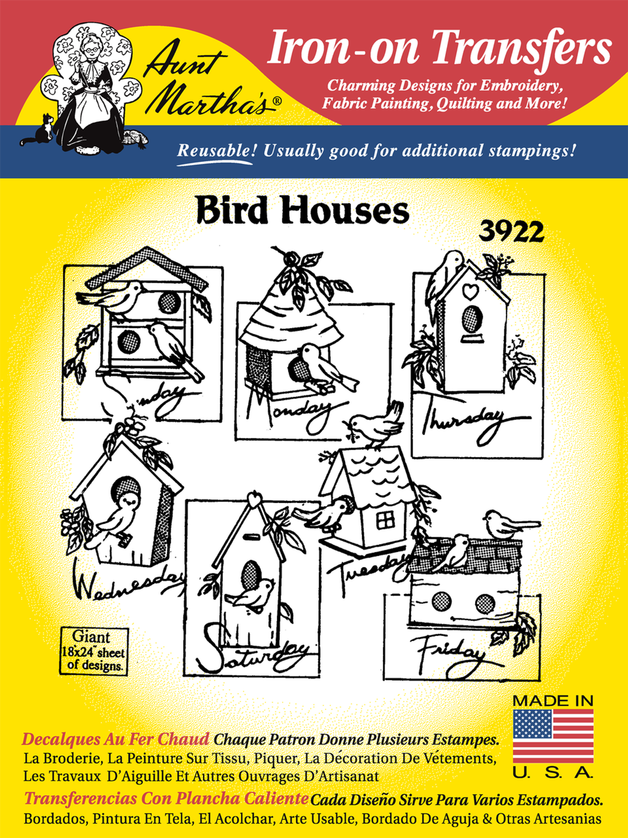 Aunt Martha's Embroidery Transfer Patterns with Days of the Week (DOW) designs. Many of these embroidery designs will feature the traditional old-fashioned chores for each day of the week ~ Monday (Wash Day), Tuesday (Iron Day), Wednesday (Mend Day), Thursday (Market Day), Friday (Clean Day), Saturday (Bake Day), Sunday (Rest Day). Transfer the pattern onto your fabric with a hot iron... use hand stitch embroidery or liquid embroidery paints to finish!
