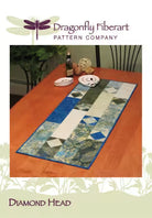 Diamond Head table runner pattern card 4-1/2in x 6-1/2in double sided color. Finished size 17in x 42in. Easy runner using square in a square method. Kits easy with 8 fat quarters and yardage. Looks fabulous in batiks, giving it a stained glass effect.