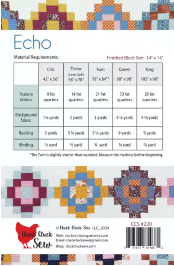 Echo is a modern fat quarter quilt with 5 sizes included in the pattern.
