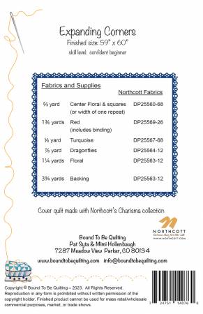 A 24" square panel plus four 7 1/2" corner squares are the main event here. Simple stripes create a framed effect. Our sample is made from Northcott's Charisma collection.