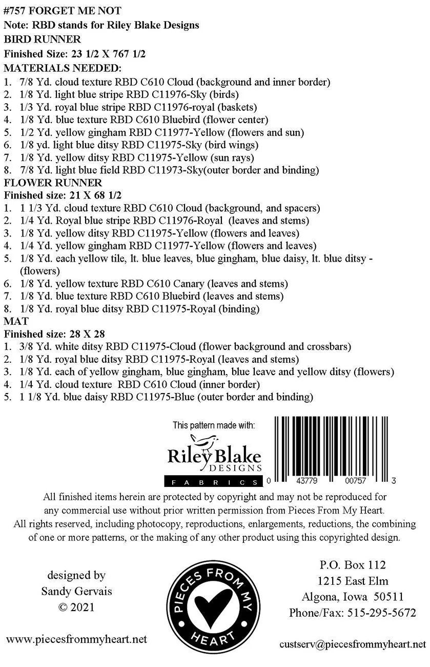 This pattern includes 3 table toppers. Easy piecing makes them all quick to make. They feature the fabric line Sunshine and Dewdrops by Sandy Gervais for Riley Blake Designs.