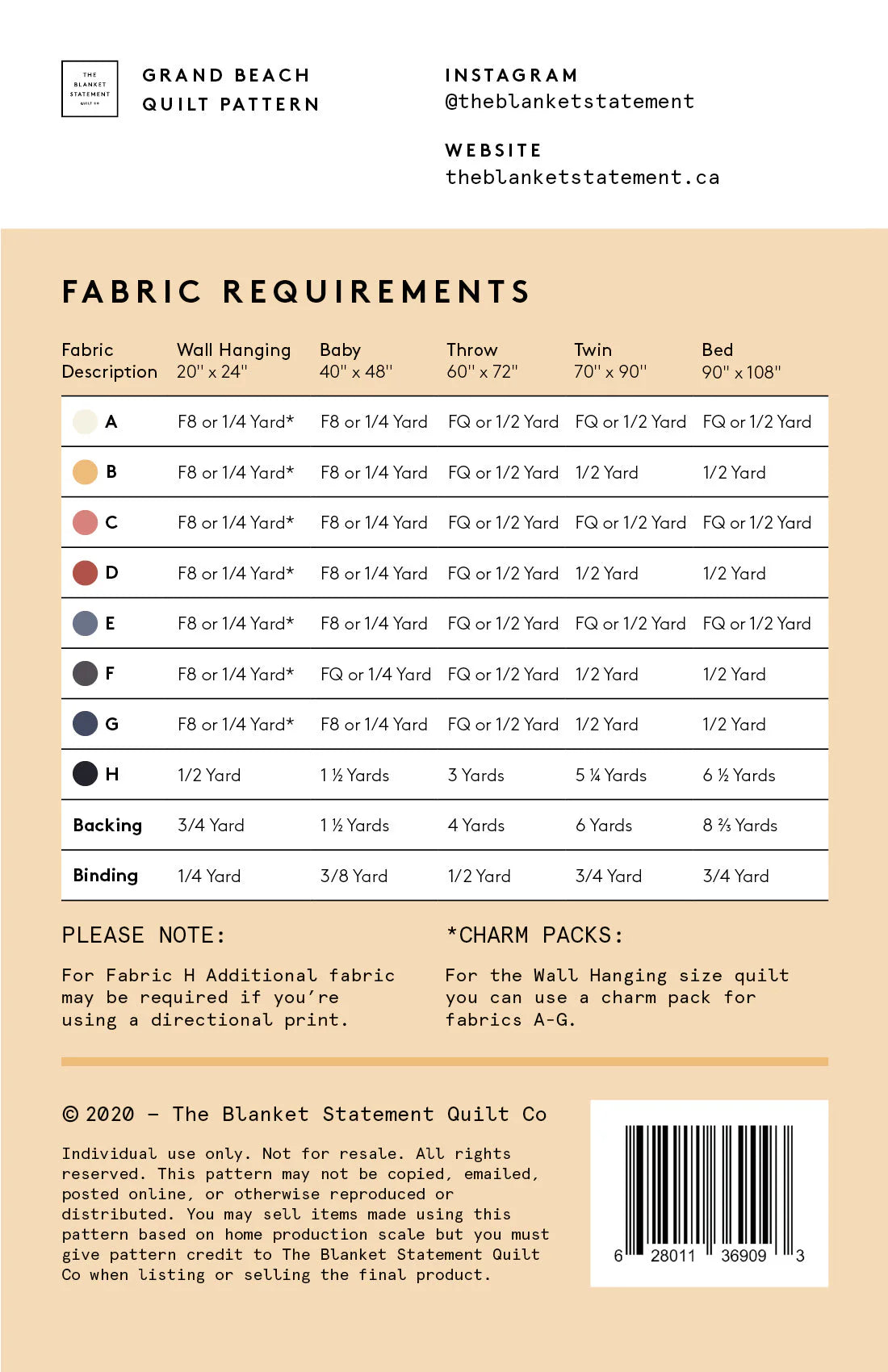 This modern, original quilt pattern by The Blanket Statement is appropriate for confident beginners to seasoned quilters! The pattern includes instructions for the following sizes: