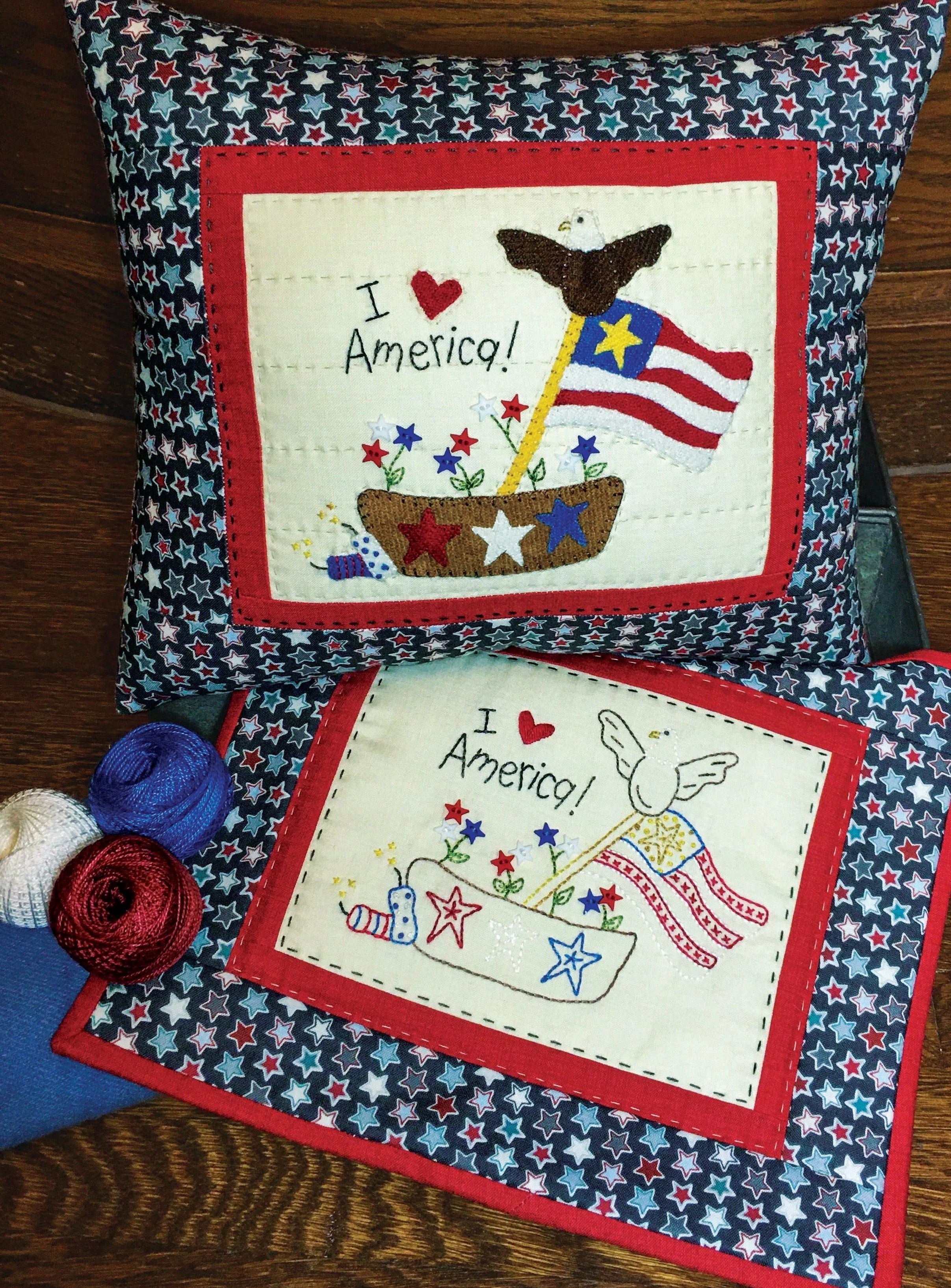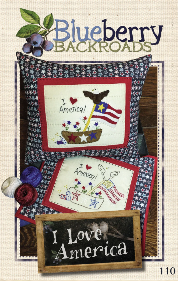 I Love America is a fun, patriotic project, done in both hand embroidery and wool applique. Includes one pack of star buttons. Complete yours as either a pillow or wall hanging.
