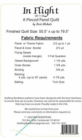 Ready to make your fabric fly?!? This panel quilt will do that! Your horizontal panel measuring 22" up to 36" will fit and create a beautiful quilt. Have fun making your fabric fly!