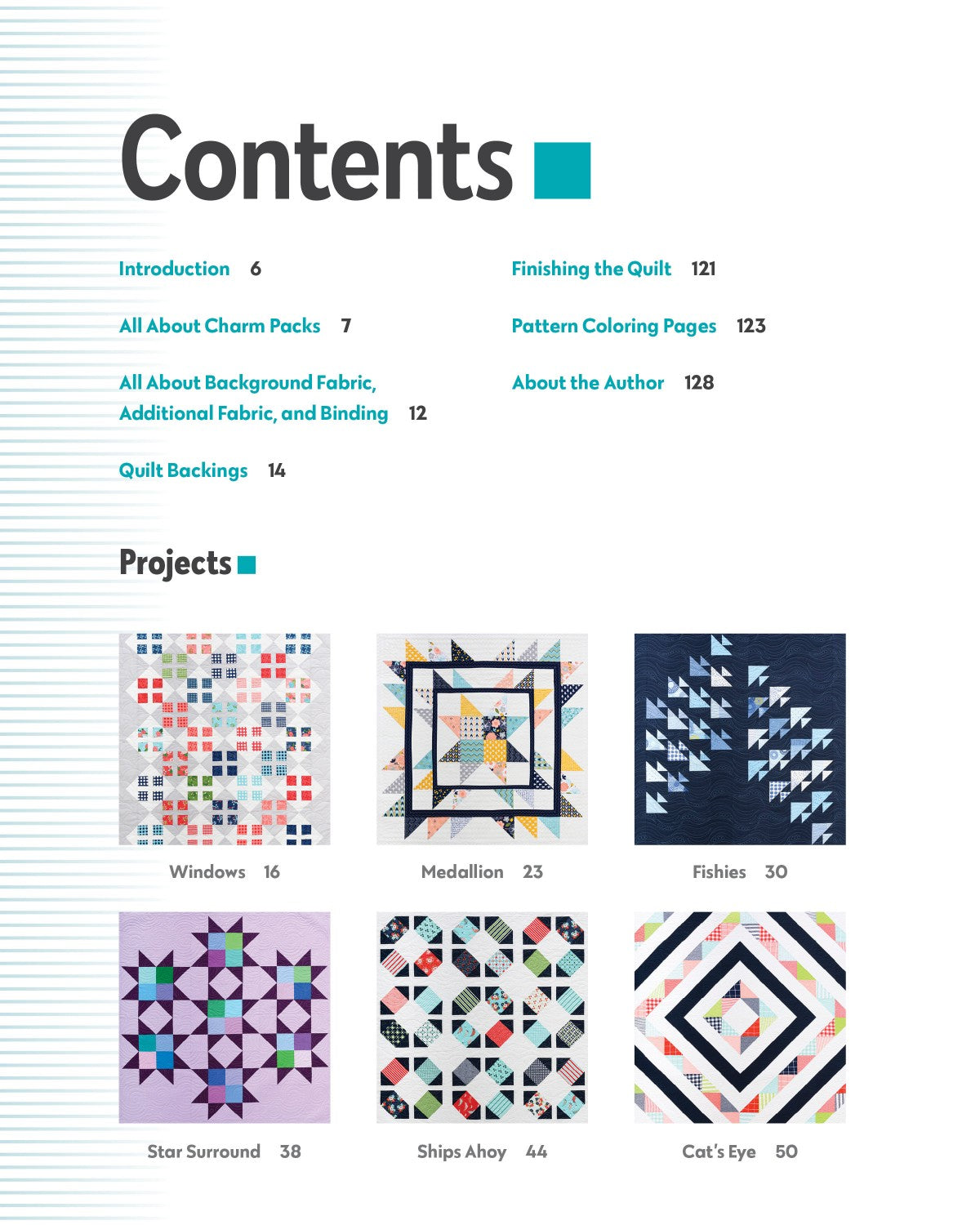 Who can resist a perfectly coordinated and fun-filled fabric charm pack? Now make the most of your growing collection with projects designed with the charm pack lover in mind. Sew colorful and bright quilt projects, each using only one charm pack, one extra fabric, and a background fabric. All 18 projects come in two colorway options with easy to follow instructions and illustrations. Finished creations have multiple uses! Projects are perfectly sized for a baby or child, but also make for unique house decor as table toppers, wallhangings, or the perfect gift for friends and loved ones. Plus, you'll never need another excuse to keep buying those irresistibly fun charm packs!