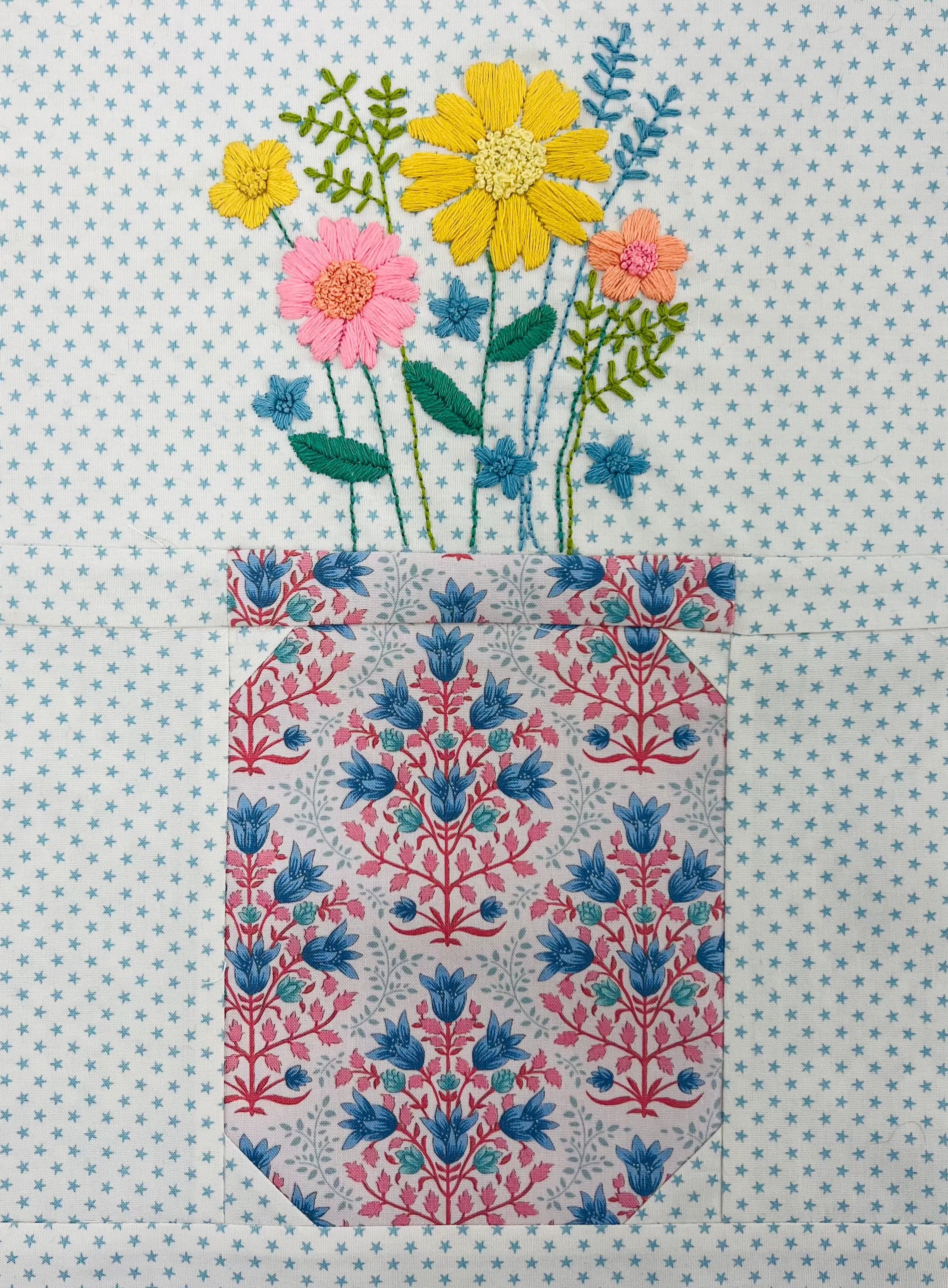 Includes 13 small quilts with traditional patchwork, english paper piecing and a dresden fan design. All new projects combine patchwork with small easy to complete hand embroidered motifs. Do you have a penchant for patchwork? Bump up your skill set and add a dash of hand embroidery to your projects! Stitch small patchwork projects, then add another layer of color, dimension, and texture with bits of hand embroidery.