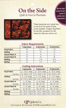 These placemats are a great way to use all the great noveltyprints available. Imagine flag fabric for the 4th, pumpkinsfor Fall, hearts for February and so on!