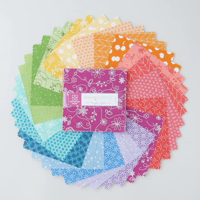 Bright Lights Kimberbell Basics Charm Pack includes 42 5" squares and includes duplicates of some prints