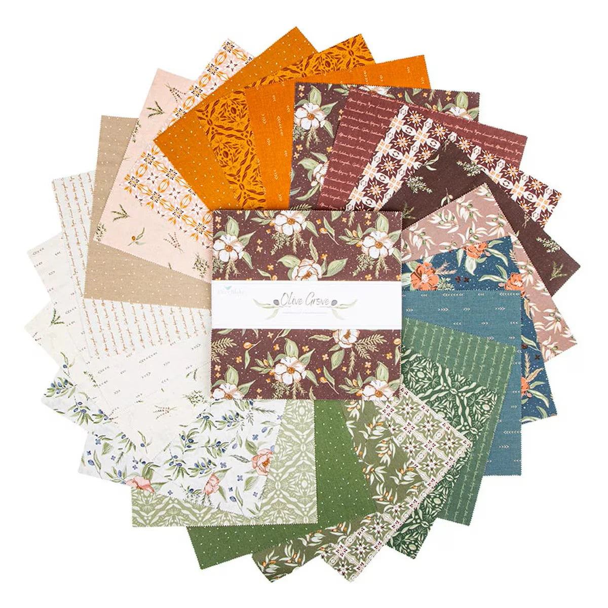 This 10" Stacker precut bundle includes 42 pieces from the Olive Grove collection by Amber Elliot of Alderwood Studio for Riley Blake Designs. Each print will be included 1-2 times in the bundle.
