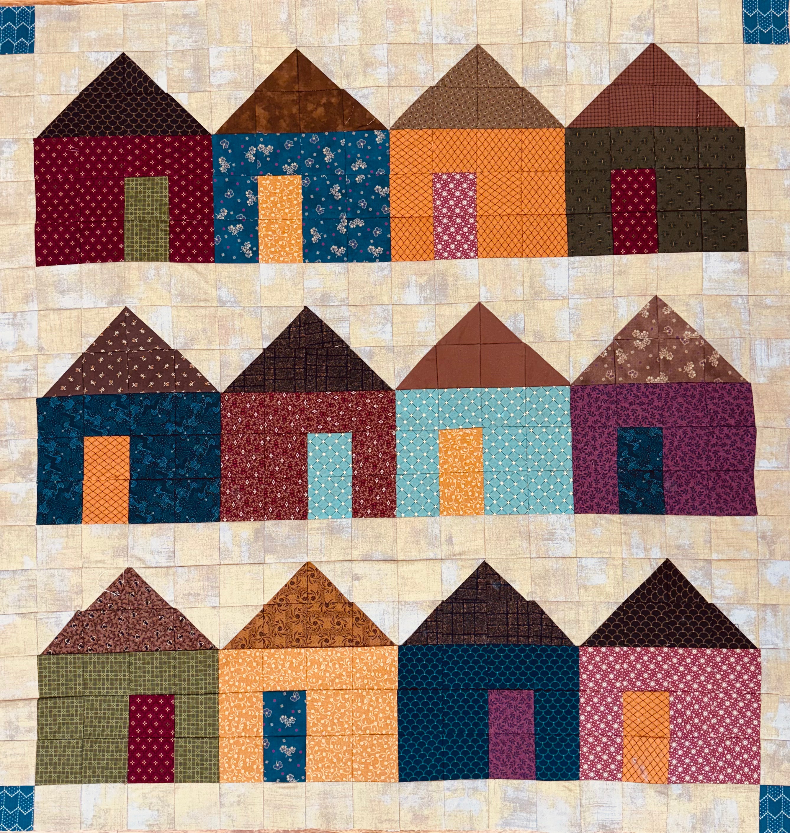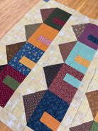 Measures 36x38. Kit includes fabrics & 3 fusible grid panels.