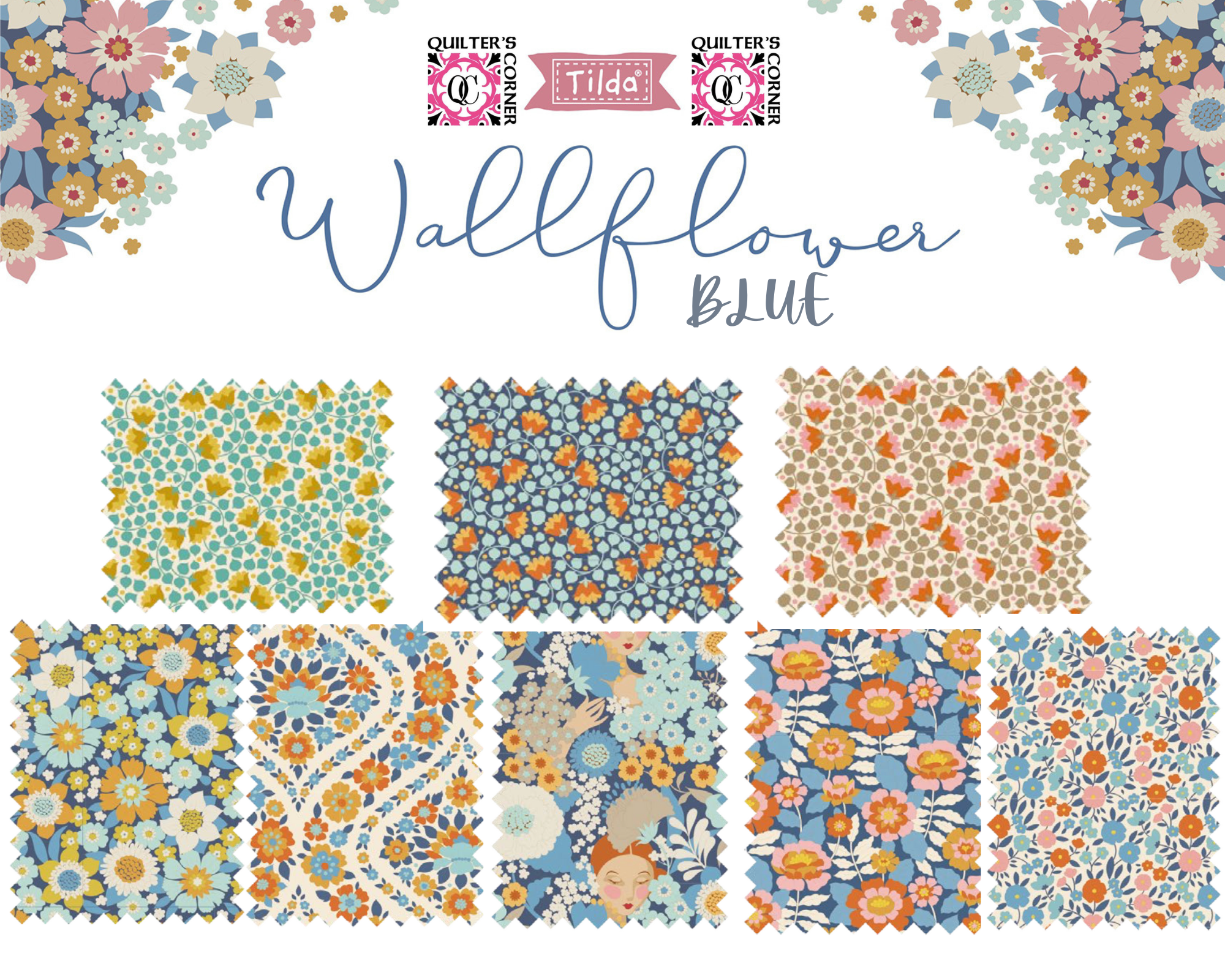 The Wallflower Collection Blue Bundle includes 8 fabric pieces of the collection prints. Tilda Fabric's Wallflower collection is designed by Norwegian designer Tone Finnanger. "Wallflower is an ornamental collection loosely inspired by and my somewhat romantic take on design styles popular in the 1960s and 70s." The collection has two distinctive color stories. One is sweet and fresh with vintage reds, greens and pinks with hints of blue and sour yellow. The other is more of a nod to the 1960s and 70s, with caramel, blue, ginger, ochre and thistle tones. The sweet Bellflower blenders complement the main collection perfectly.