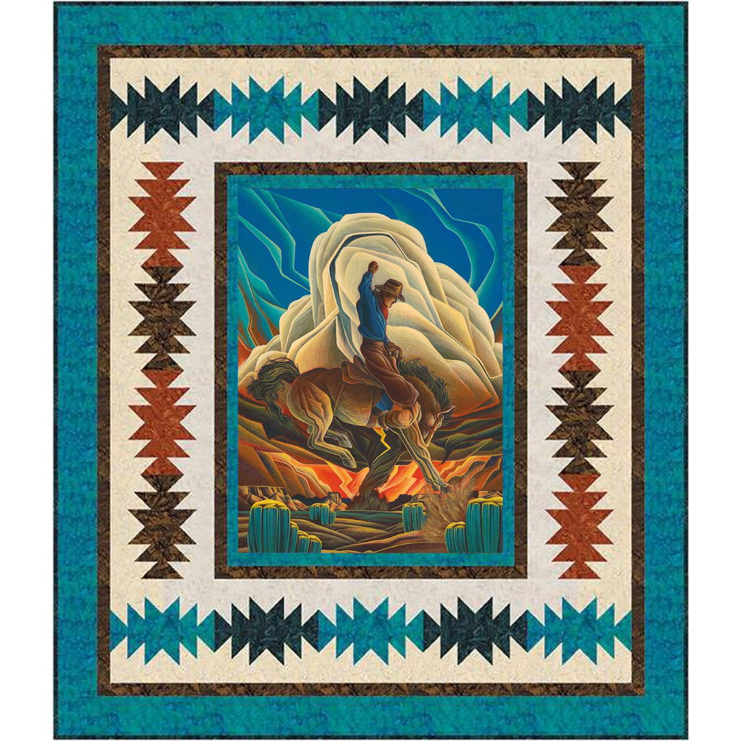 Saddle up for a quilting adventure with this spirited Southwest Kaleidoscope design! Featuring the eye-catching Western Reflections Cowboy Panel paired with rich batiks, this kit brings bold geometric patterns and authentic southwestern flair to your creative space. Perfect for creating a stunning 72" x 84" finished quilt that'll be the talk of the ranch. Wrangle your colors and watch this kaleidoscopic beauty come to life!