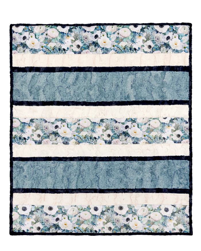 We can't get enough of how realistic the flowers look in this featured print! Coming in at approximately 58" by 68" inches when finished, this Blissful Bouquet Crazy 8 Cuddle® Kit fabrics - all pre-cut into 10-inch strips. This kit also includes a pattern with step-by-step directions and binding, and we recommend using for the backing (approximately two yards needed).