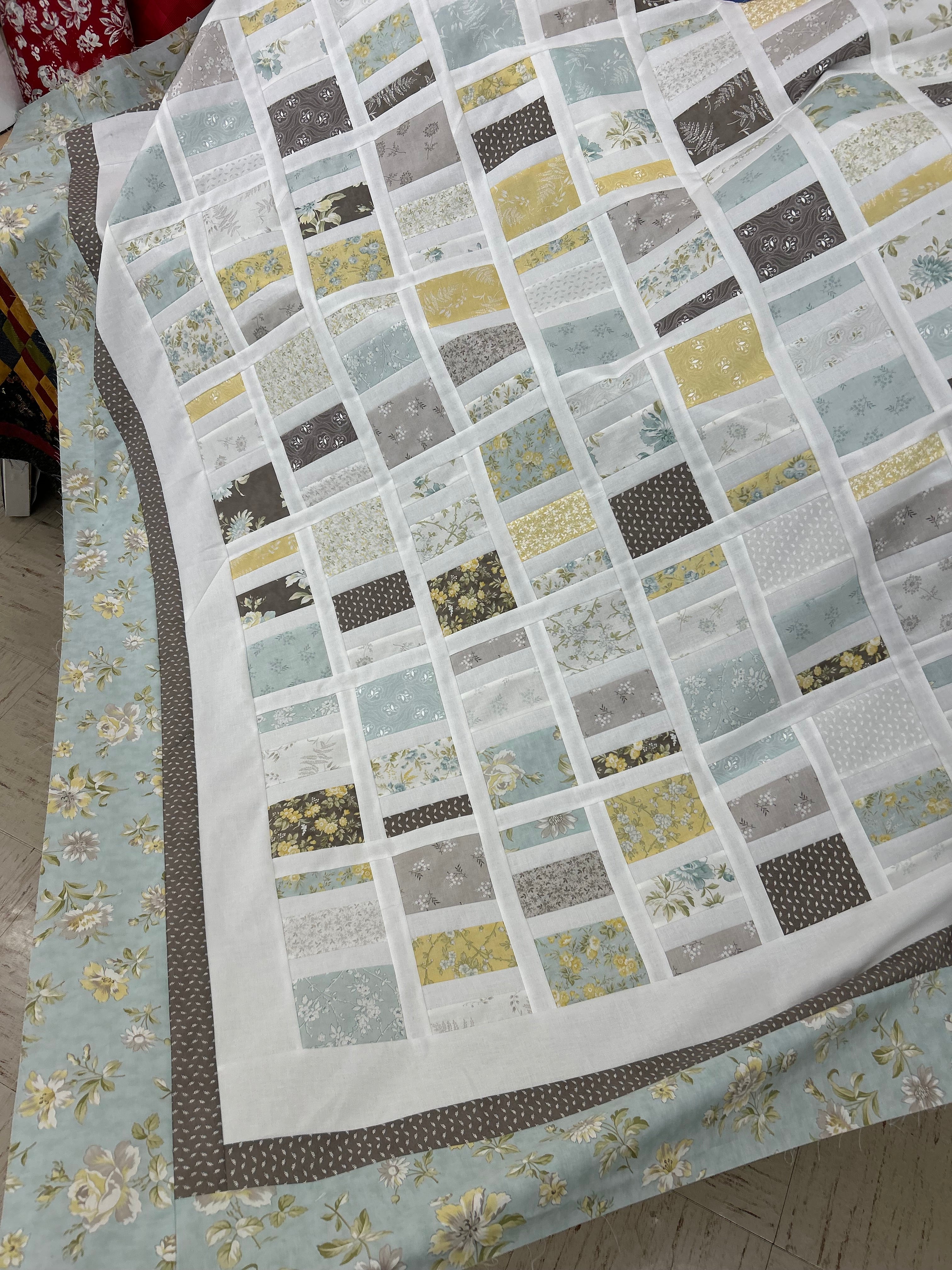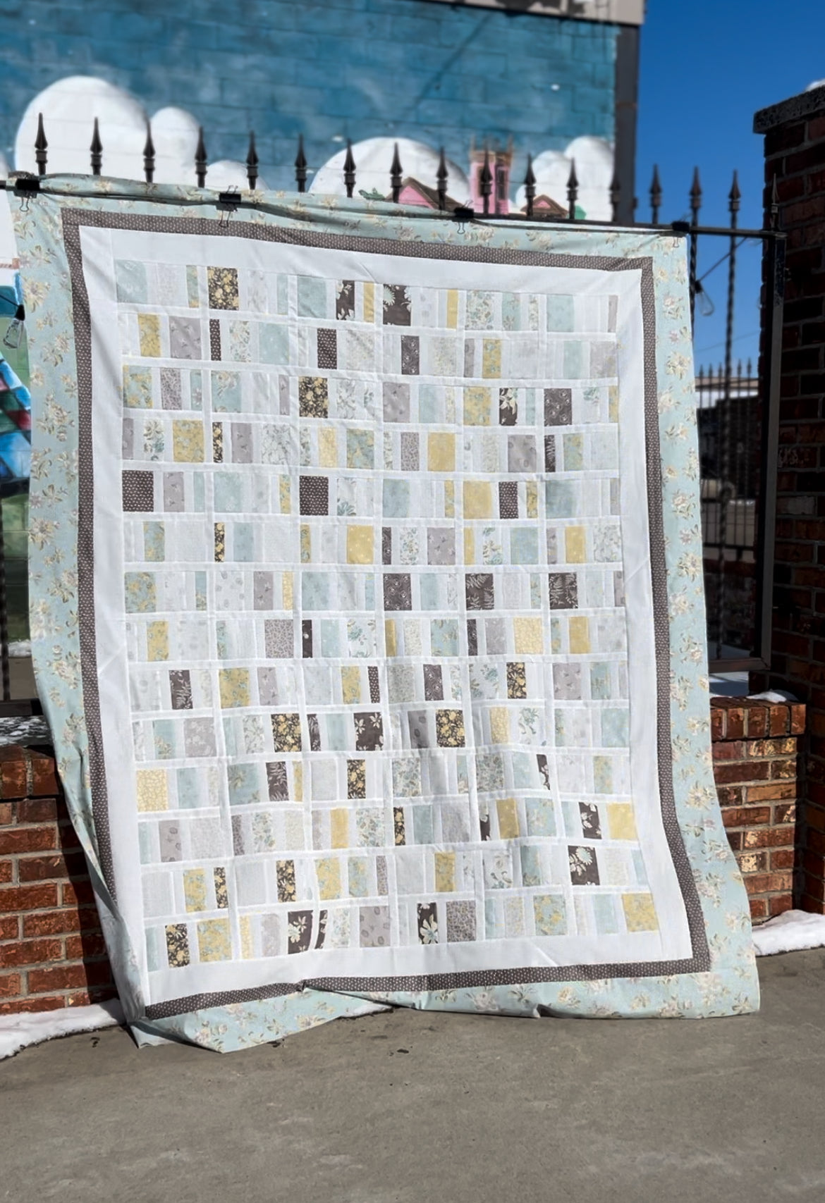 The Carolina Shag pattern, measuring 72 x 86, is brought to life with the Honeybloom layer cake by Moda, plus added borders. Kit includes fabrics for top & binding.