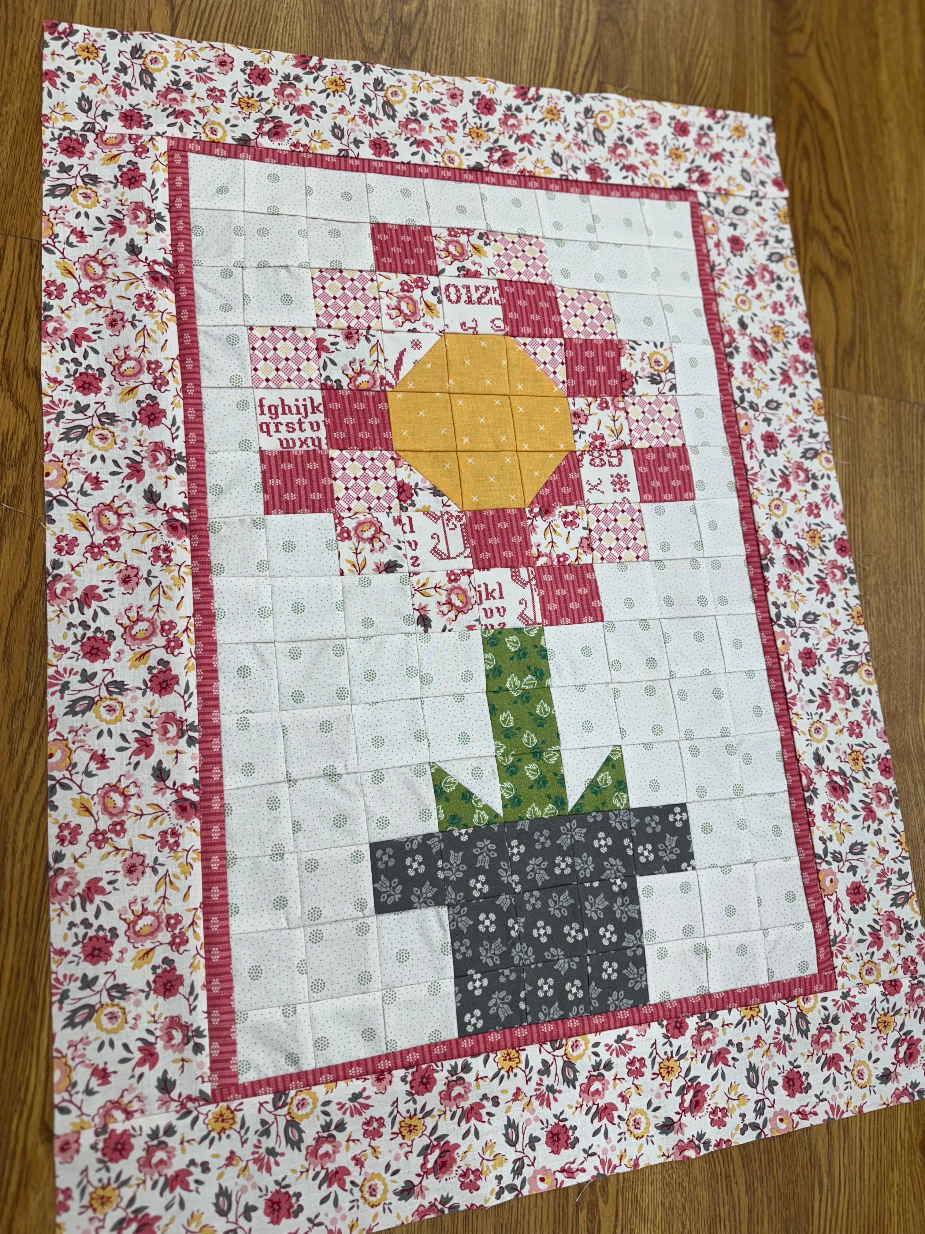 Measures 20x23. Kit includes pattern, instructions & fabrics for top & binding.