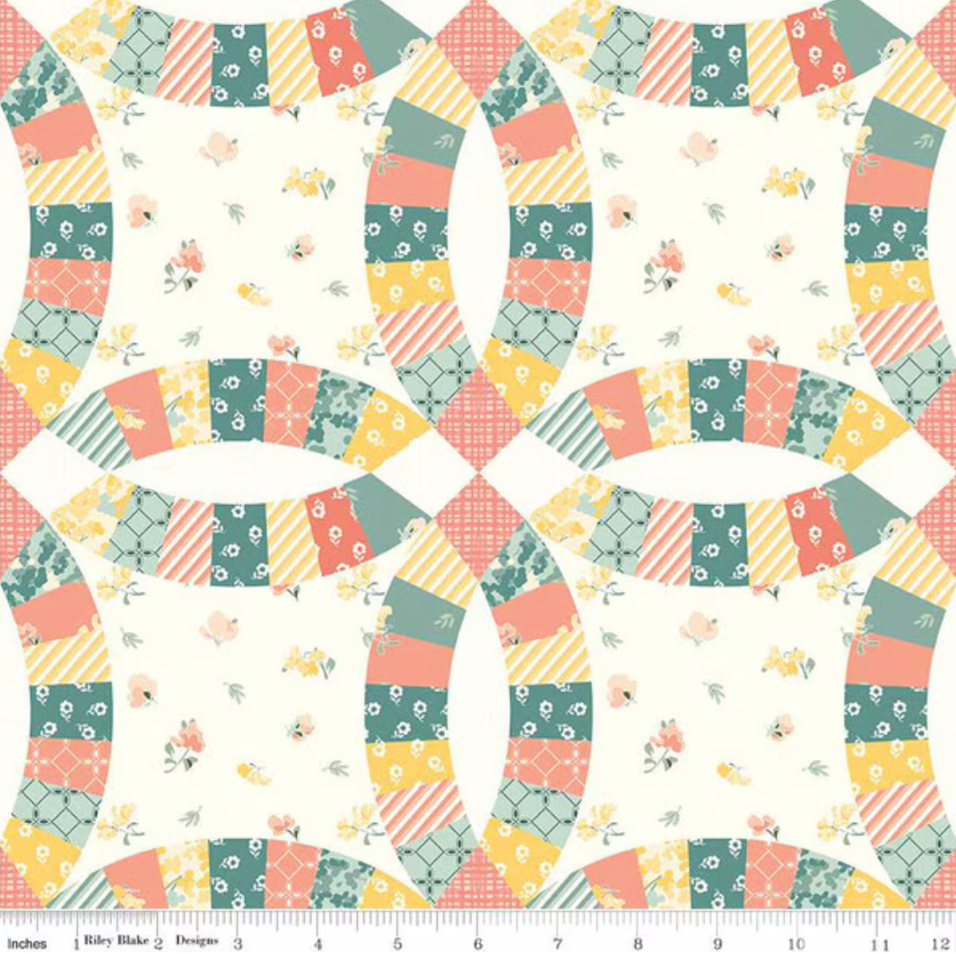 New Beginnings by Sandy Gervais for Riley Blake Designs is great for quilting, apparel and home decor. This cheater print features a double wedding ring quilt design.